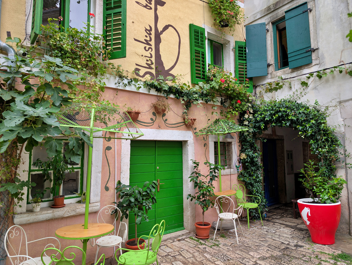Der Tag startete mit richtig heftigem Regen, der leider auch den gesamten Vormittag anhalten sollte. Für den Mittag waren zudem noch Gewitter angekündigt. Um zehn Uhr mussten wir schweren Herzens aus unserer Unterkunft in Rovinj auschecken. Zum Abschied bekamen wir von unserer liebenswerten Gastgeberin sogar noch eine Flasche Bio-Olivenöl aus eigenem Anbau geschenkt – eine Geste, über die wir uns sehr freuten.