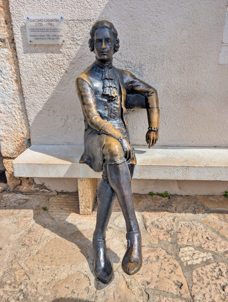 Etwas unterhalb der Kirche lud der schöne Degrassi-Platz mit drei Restaurants zum Verweilen einladen. Wir schlenderten jedoch weiter durch die Gassen zu diversen Aussichtspunktes und schließlich der Statue des mit Casanova wohl berühmtesten Besucher des Ortes.