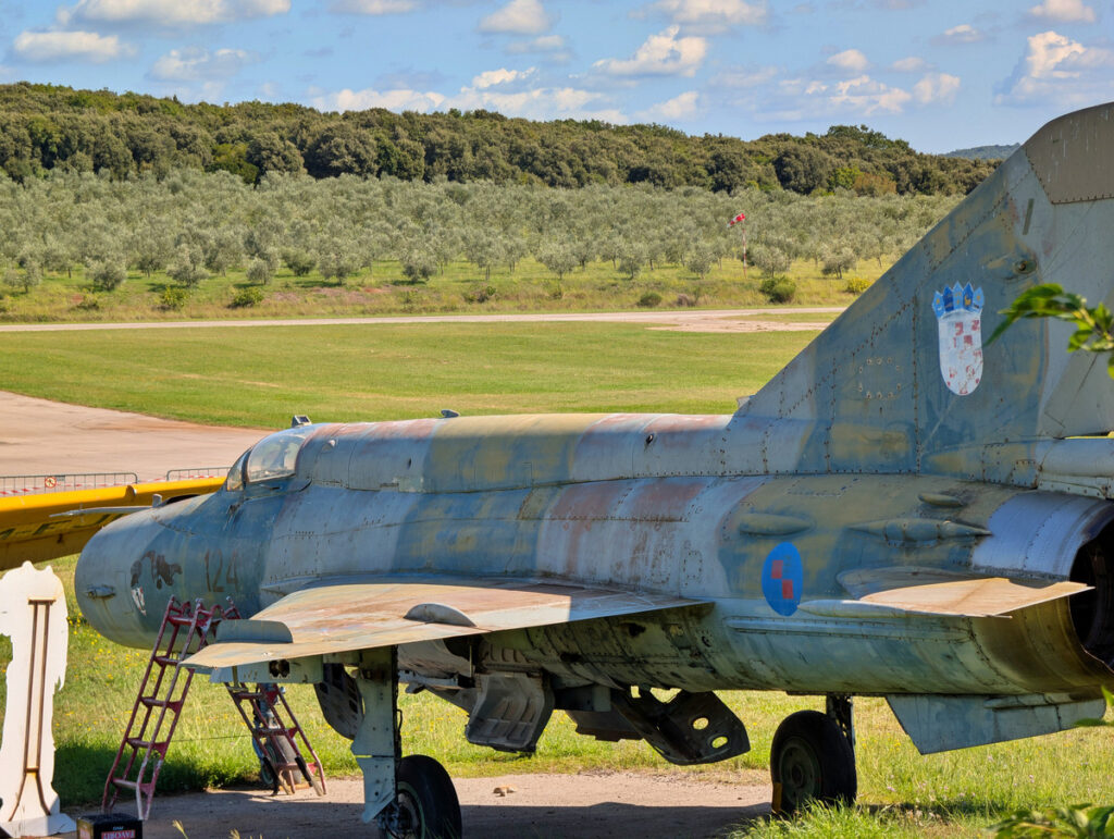 Nach dem Essen spazierten wir zurück zum Auto und machten uns auf die Weiterfahrt zum Aeropark von Vrsar. Es handelte sich um einen kleiner Sportflugplatz auf dem sich diverse alte Flugzeuge, darunter auch ein Mig21-Jagdflugzeug befinden.