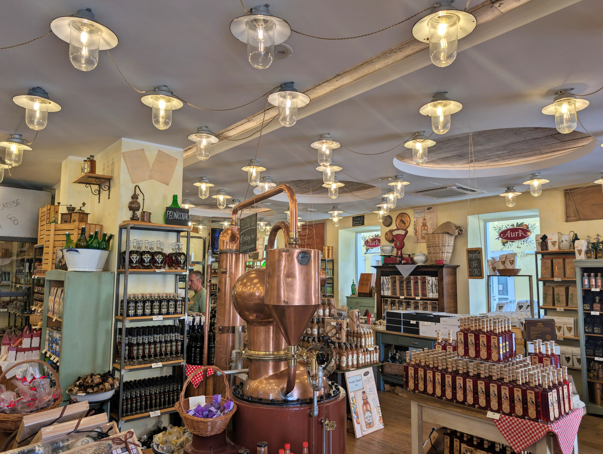 In einem großen Laden der Spirituosen-Kette Aura gehört und deren Filiale man in fast jedem Touristenort findet probierten wir uns zunächst ein wenig durch, bevor wir ein Fläschchen Mistel-Brandy erstanden.