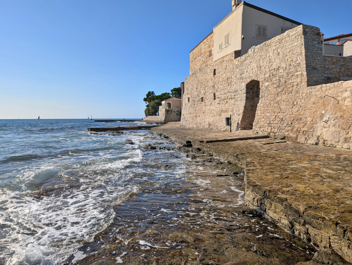 Wir setzen unseren Rundgang an der Kirche St. Pelagia fort und erreichten die westliche direkt am Meer gelegene Stadtmauer. Hier bieten sich viele Möglichkeiten im sauberen Wasser schwimmen zu gehen und sonnenzubaden.