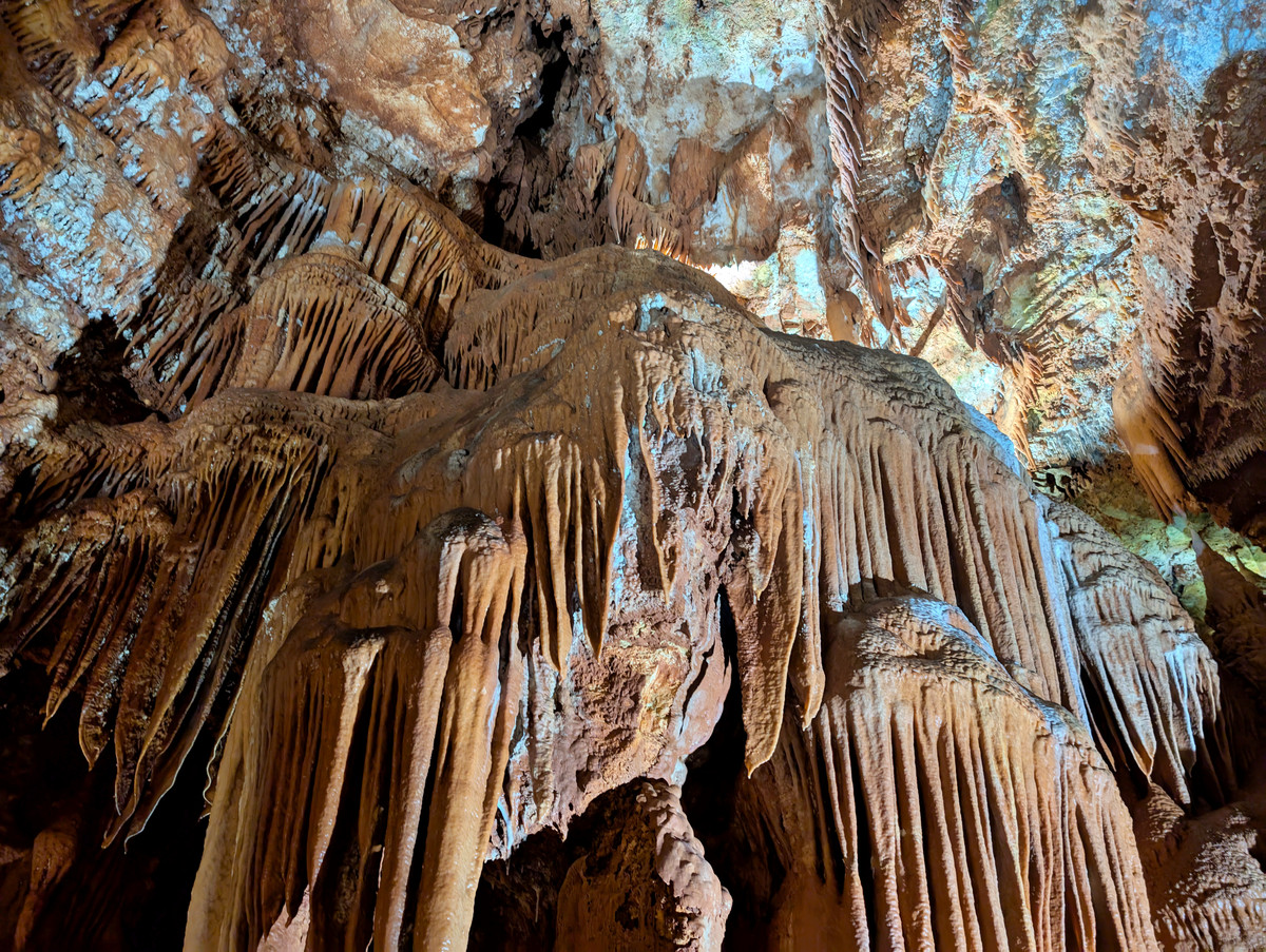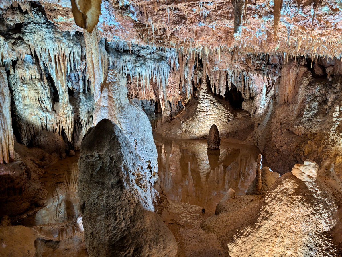 Neben einer Ausstellung alter Traktoren und Kletterwänden ist hier die Hauptattraktion die große Tropfsteinhöhle.