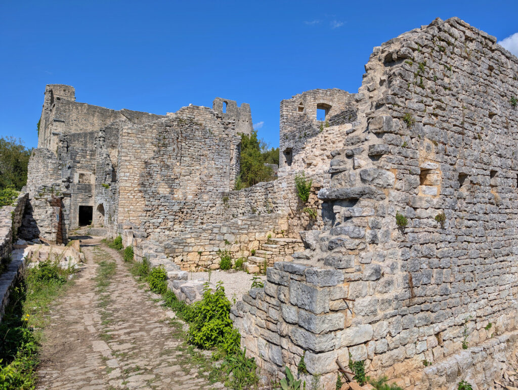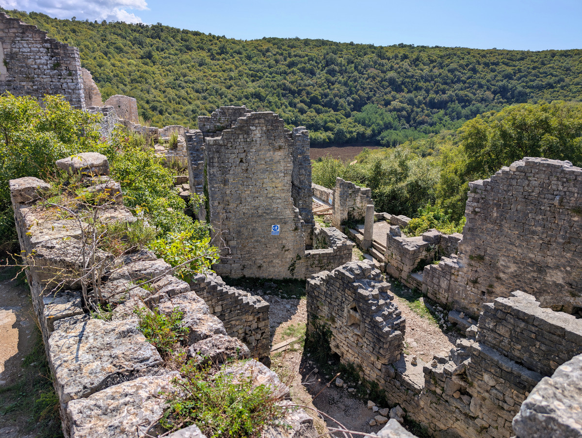 Zurück im Auto fuhren wir am frühen Nachmittag eine knappe dreiviertel Stunde über Landstraße und kleine Dörfer bis zur Ruinenstadt Dvigrad. Diese liegt quasi im Nirgendwo, aber vor Ort gibt es dennoch einen kleinen Kiosk samt Toilette.