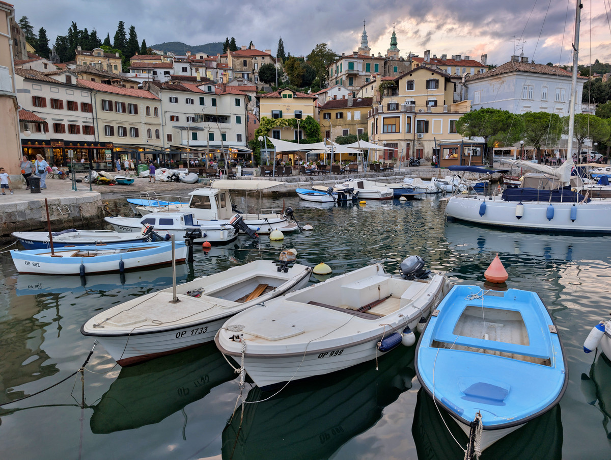 Wir spazierten etwa zwei Kilometer entlang der Küste bis in das malerische Fischerdorf Volosko. Die Atmosphäre im kleinen Hafen war so einladend und nett, dass wir uns spontan dazu entschieden, direkt dort zum Abendessen zu bleiben.