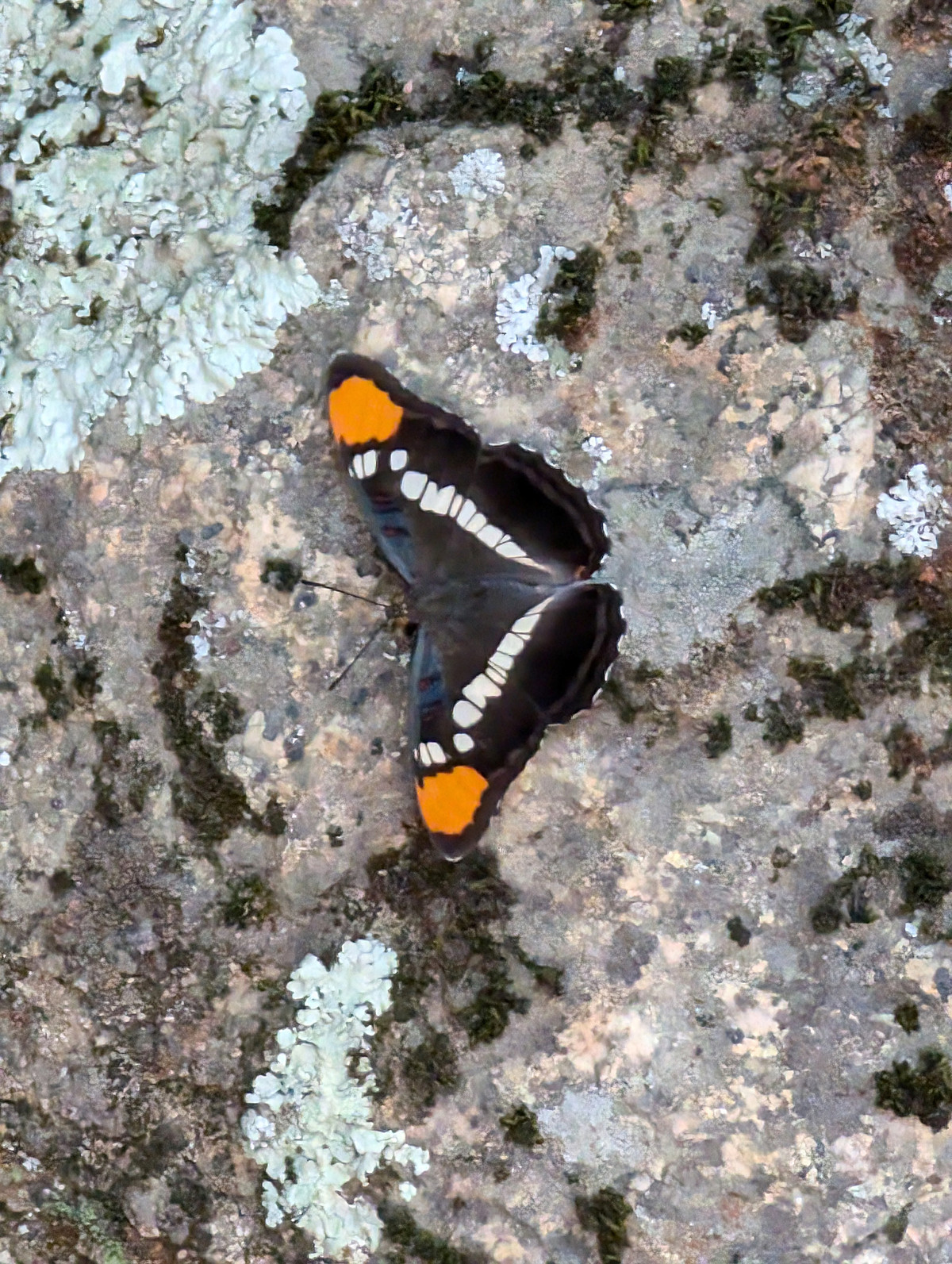 Unterwegs begegneten uns einige Schmetterlinge und interessante Libellen, darunter eine in kräftigem Blutrot – vermutlich eine Flammenlibelle. Außerdem entdeckten wir Bäume, deren Rinde fast wirkte, als wäre sie mit roter Melasse überzogen. Viele Schmetterlinge begleiteten uns ebenfalls ein Stück des Weges.