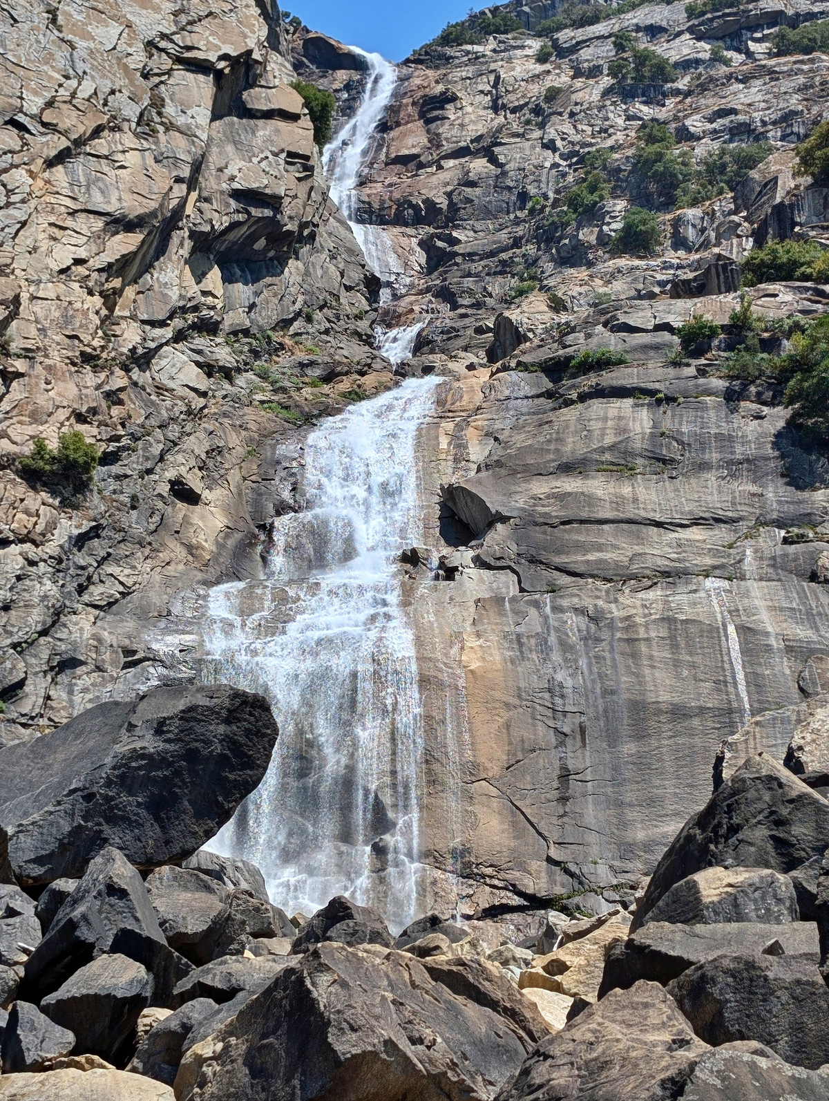 Bereits von dort hat man einen großartigen Blick auf das Hetch Hetchy Reservoir, eingerahmt von hohen Granitwänden. Der See versorgt das fast zweihundert Kilometer entfernte San Francisco samt der ganzen Bay Area dort mit Wasser und Strom. Er ist gleichzeitig auch umstritten, da das geflutete Tal landschaftlich ähnlich schön gewesen sein soll wie das Yosemite Valley. Dadurch ist es hier deutlich ruhiger und alles bei Weitem nicht so überlaufen.