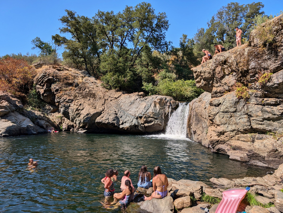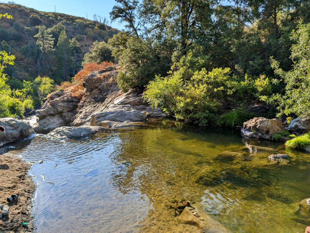 Die lediglich 20 Minuten Autofahrt von unserem Übernachtungsort entfernten natürlichen Wasserbecken am Tuolumne River eigneten sich nämlich perfekt zum Schwimmen und Abkühlen von der Hitze während der Wanderung.
