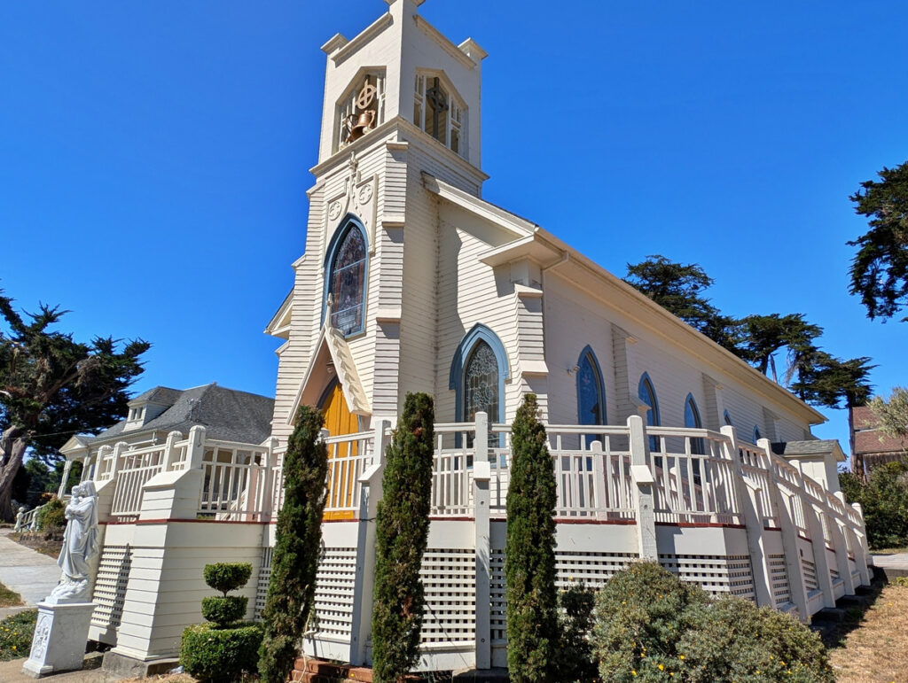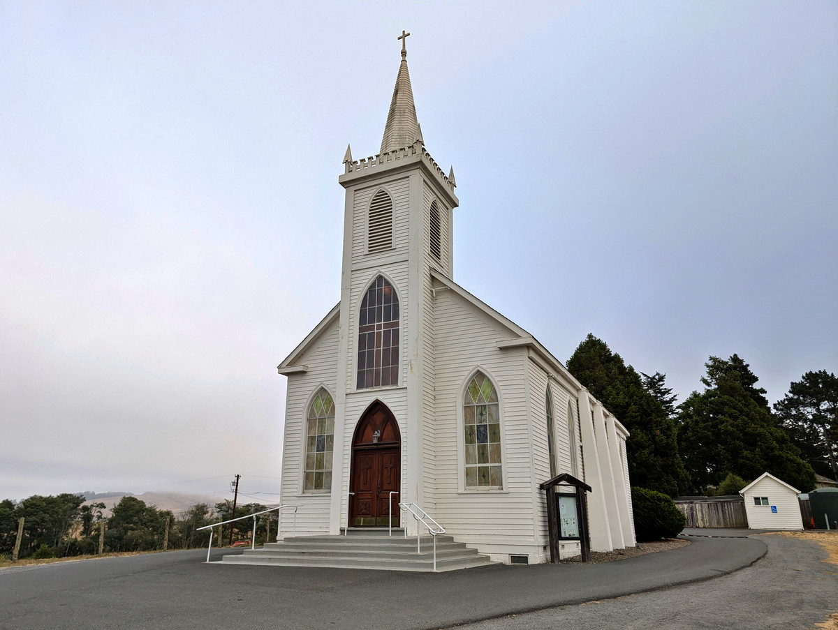 Die Fahrt führte uns zunächst über Buchten und malerische Abschnitte des Highway Nummer 1. Wir legten einen kurzen Halt in Tomales ein, einem pittoresken Ort mit alten Fassaden und einer schönen Kirche, die sofort zum Fotografieren einlud.