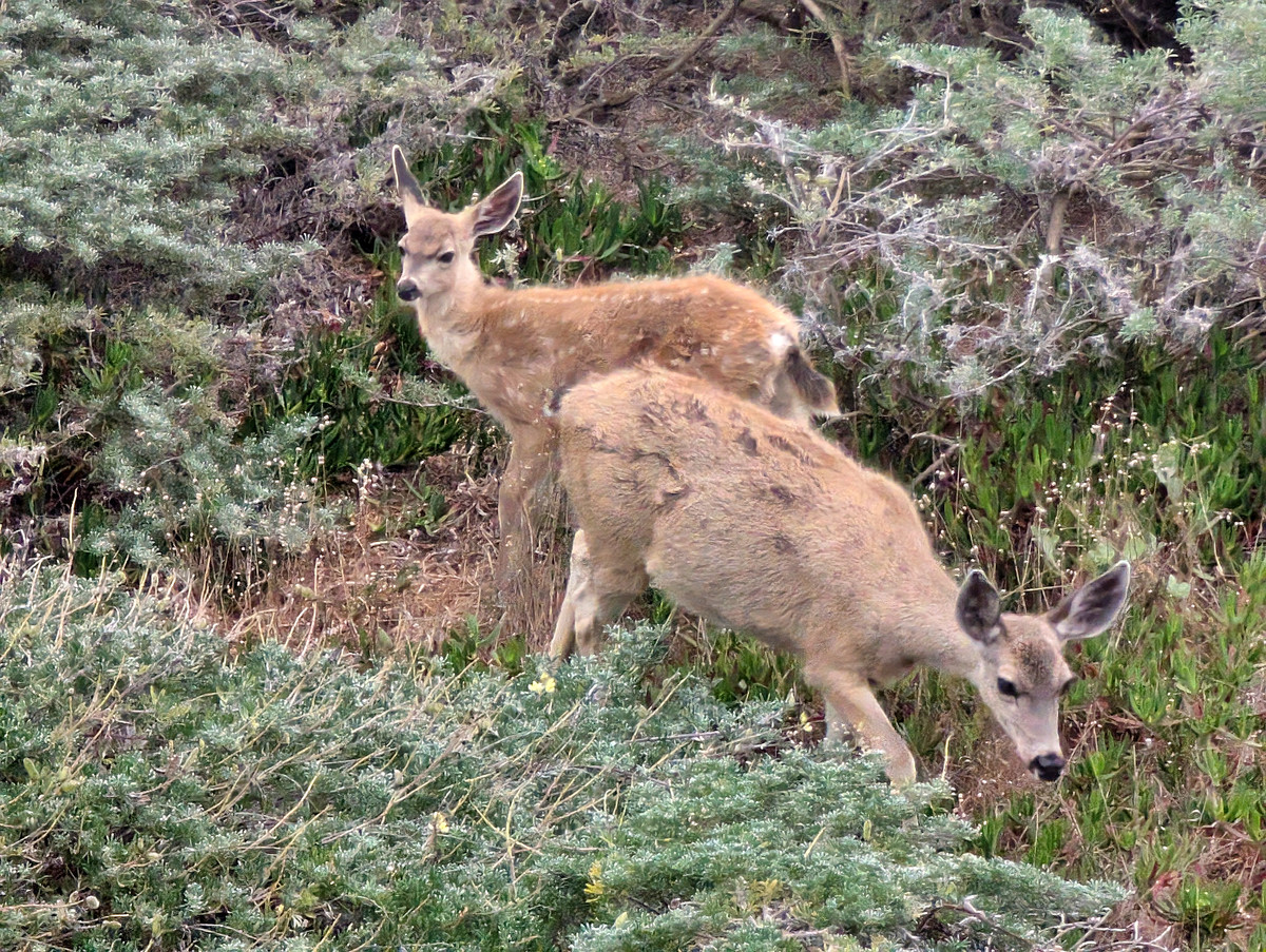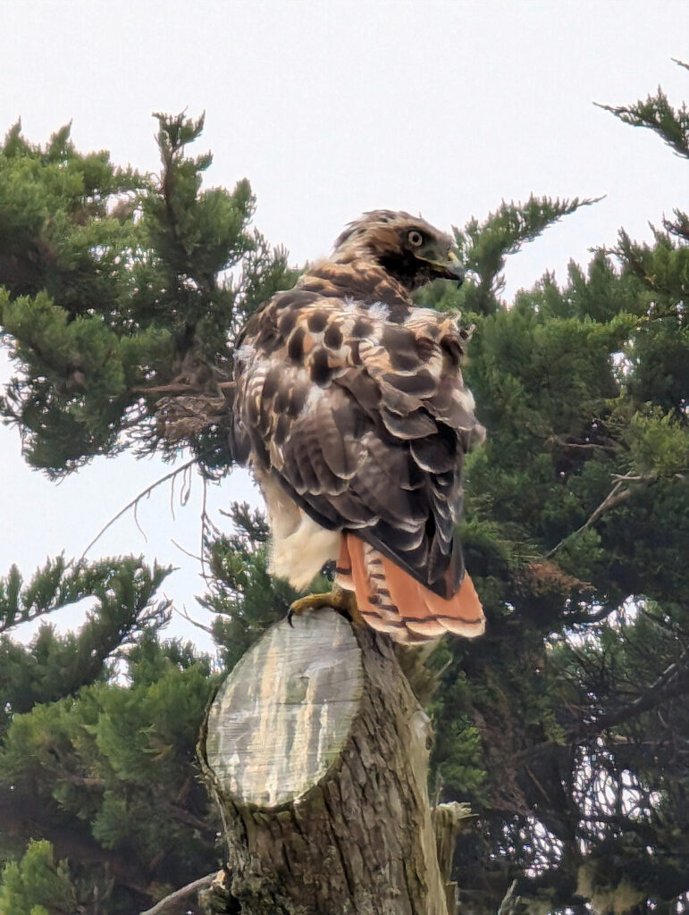 Die Landschaft um Point Reyes war faszinierend. Überall zwischen den Büschen grasten Hirsche, die sich von den Besuchern kaum stören ließen. Wir hatten sogar das Glück, einen Rotschwanzbussard zu entdecken, der im Baum saß, bevor er majestätisch über der Landzunge kreiste.