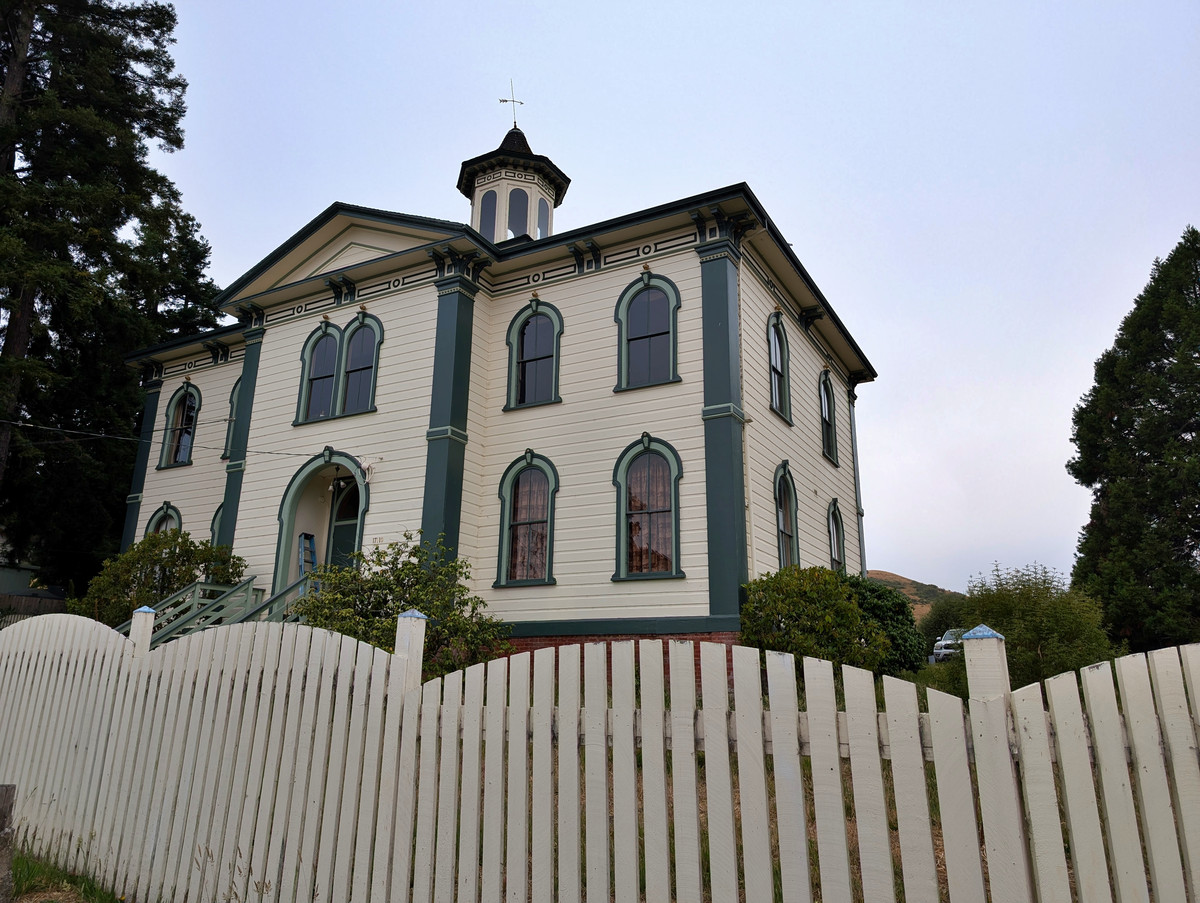 Doch der Tag war noch nicht ganz vorbei. Ein kleiner Umweg führte uns nach Bodega selbst, wo die berühmte Kirche und die Schule stehen. Als Filmfans ließen wir uns die Gelegenheit nicht entgehen, auf den Spuren von Alfred Hitchcocks Klassiker „Die Vögel“ zu wandeln. Ein etwas unheimlicher, aber passender Ausklang für einen Tag voller Kontraste zwischen Sonne, Nebel und wilder Küstennatur.
