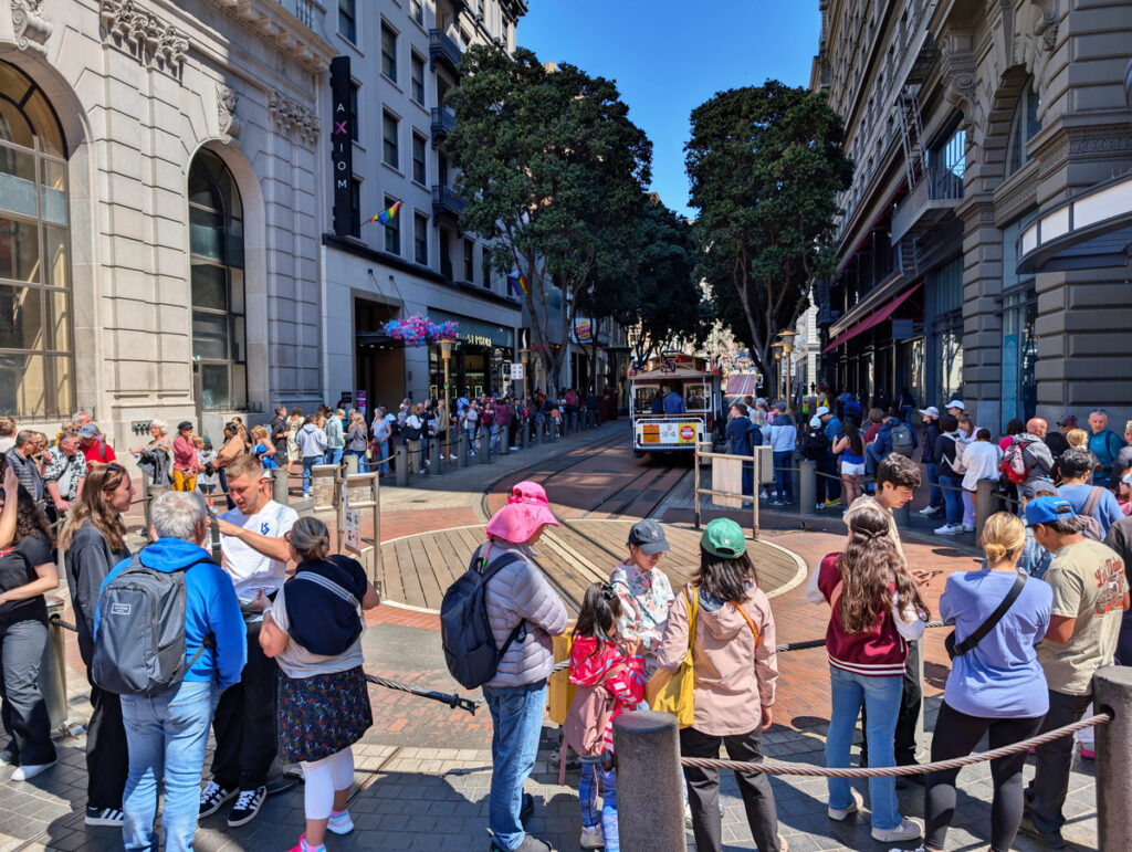Nach dem Frühstück spazierten wir den bereits von unserer Ankunft bekannten kurzen Weg vorbei am Union Square hinab bis zur Wendestation der Cable Cars in der Powell Street.