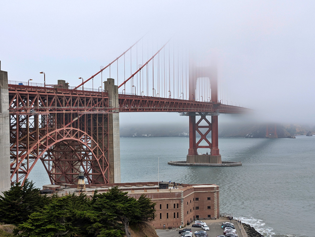 Am frühen Nachmittag brachen wir wieder auf und fuhren mit der Buslinie 28 von der nahegelegenen Haltestelle an der North Point Street eine Viertelstunde bis zur Golden Gate Bridge.