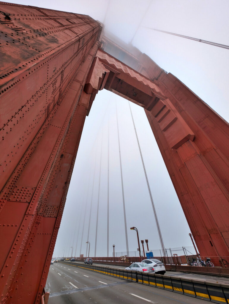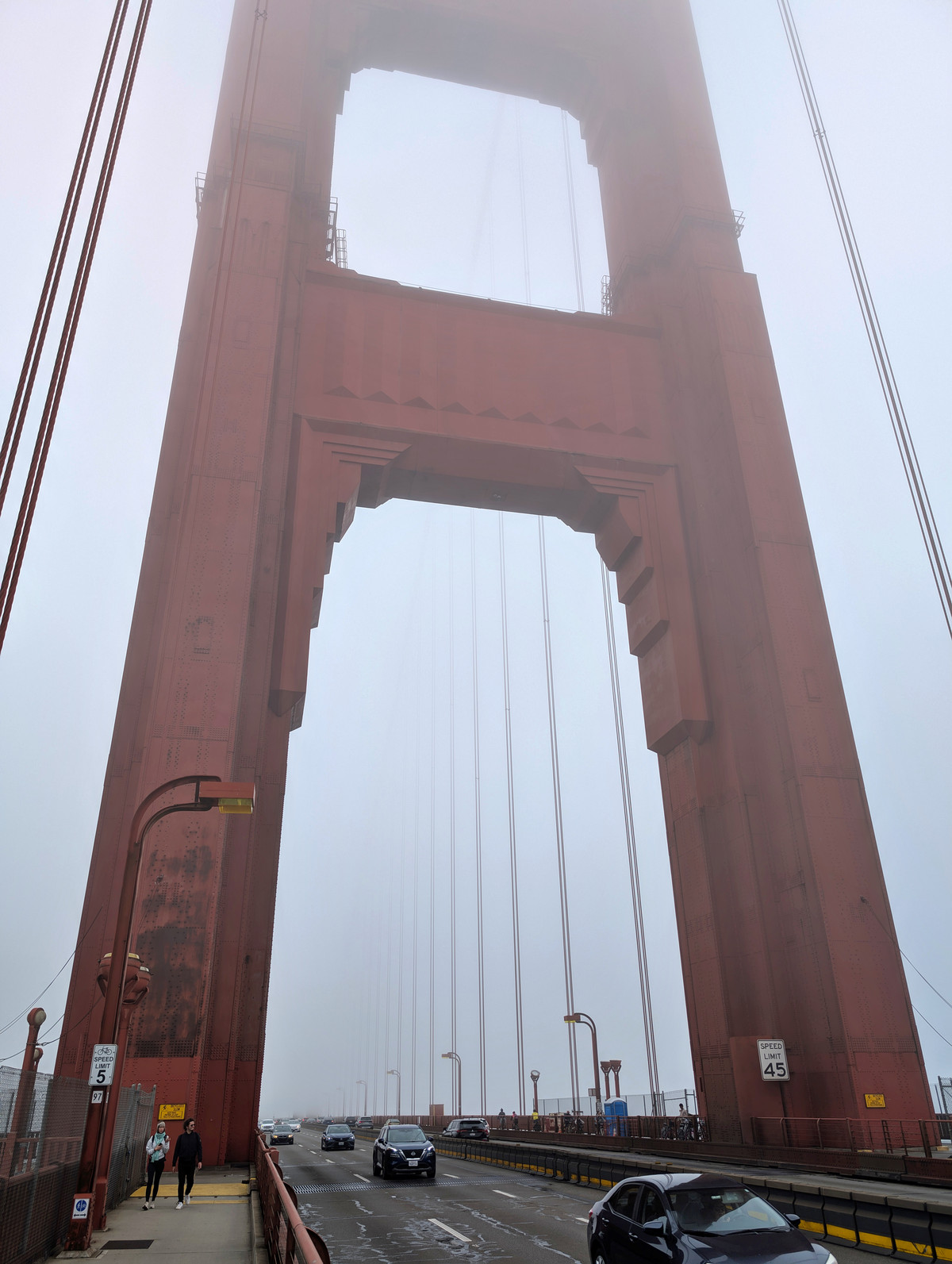 Leider war die Brücke auch jetzt noch zu großen Teilen vernebelt und das Wetter ziemlich kalt und windig. Dies kann einem leider sehr häufig in San Francisco passieren, da auch wie gestern bei strahlend blauen Himmel, die Küste und die Brücke durch die kalten Ströme des Pazifiks oft im Nebel liegen.