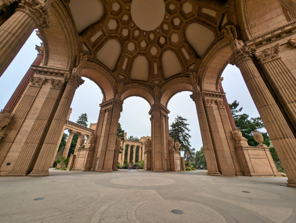 Ziemlich klamm und froh nach circa einer Stunde wieder im Bus zu sein, fuhren wir zurück mit der Linie 28, stiegen jedoch gleich am ersten Halt wieder aus, um den Palace of Fine Arts zu besichtigen. Dabei handelt es sich um eine riesige Rotunde, umgeben von weiteren Gebäuden in einer schönen Parkanlage.