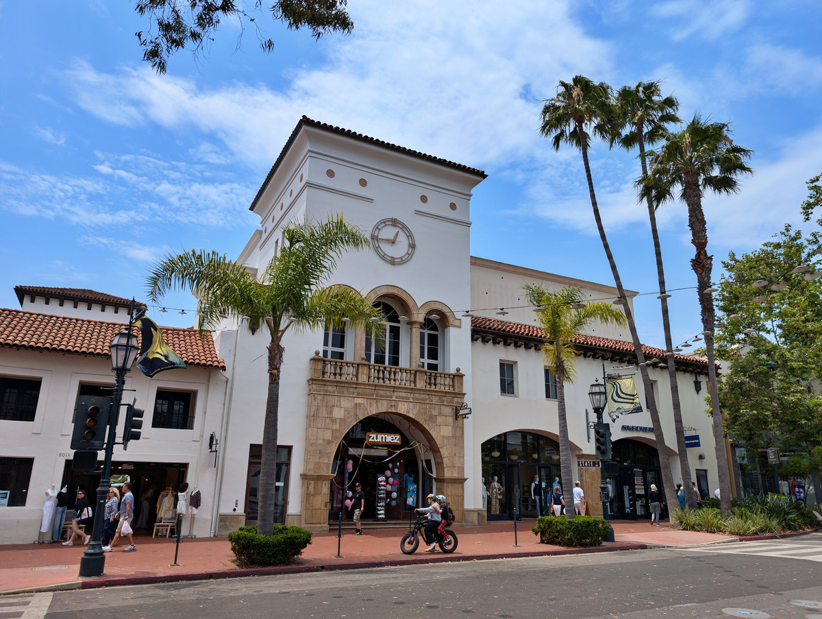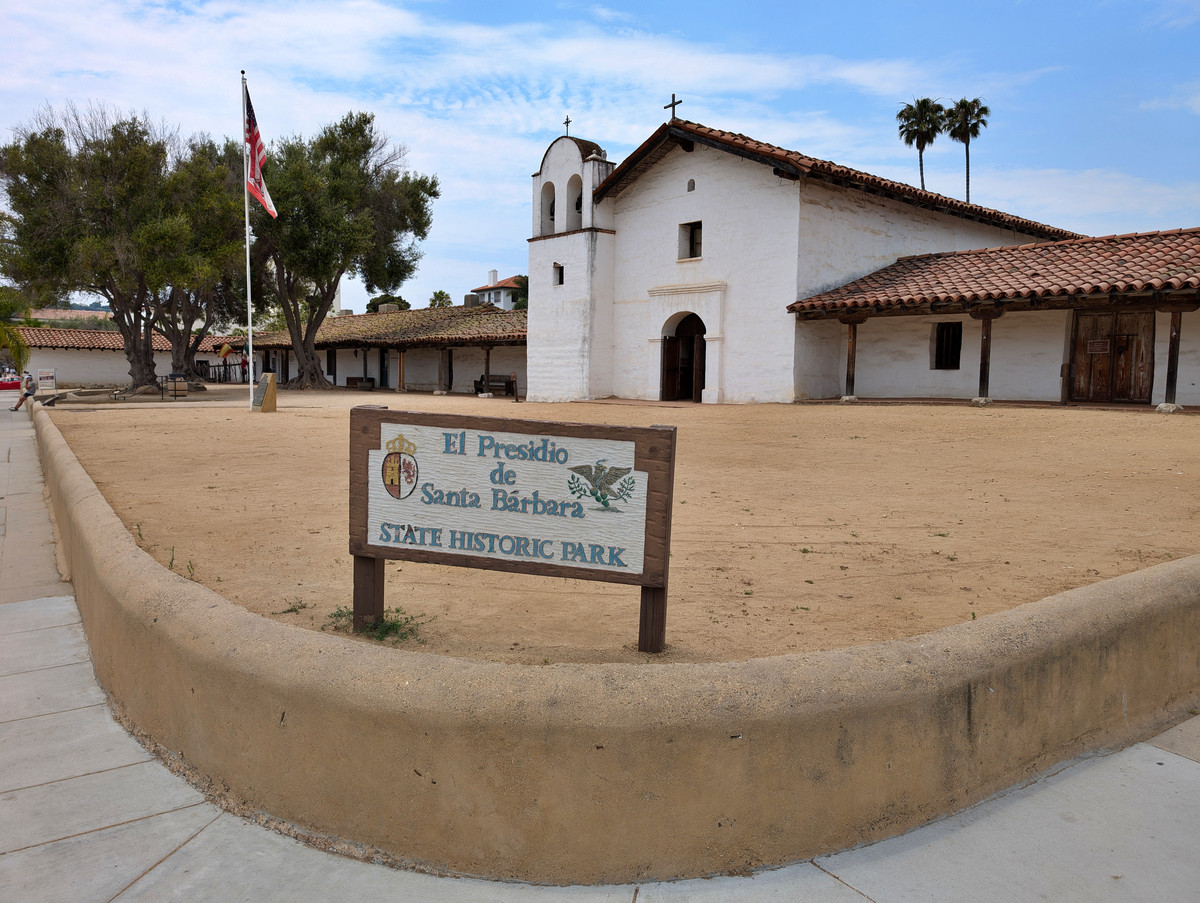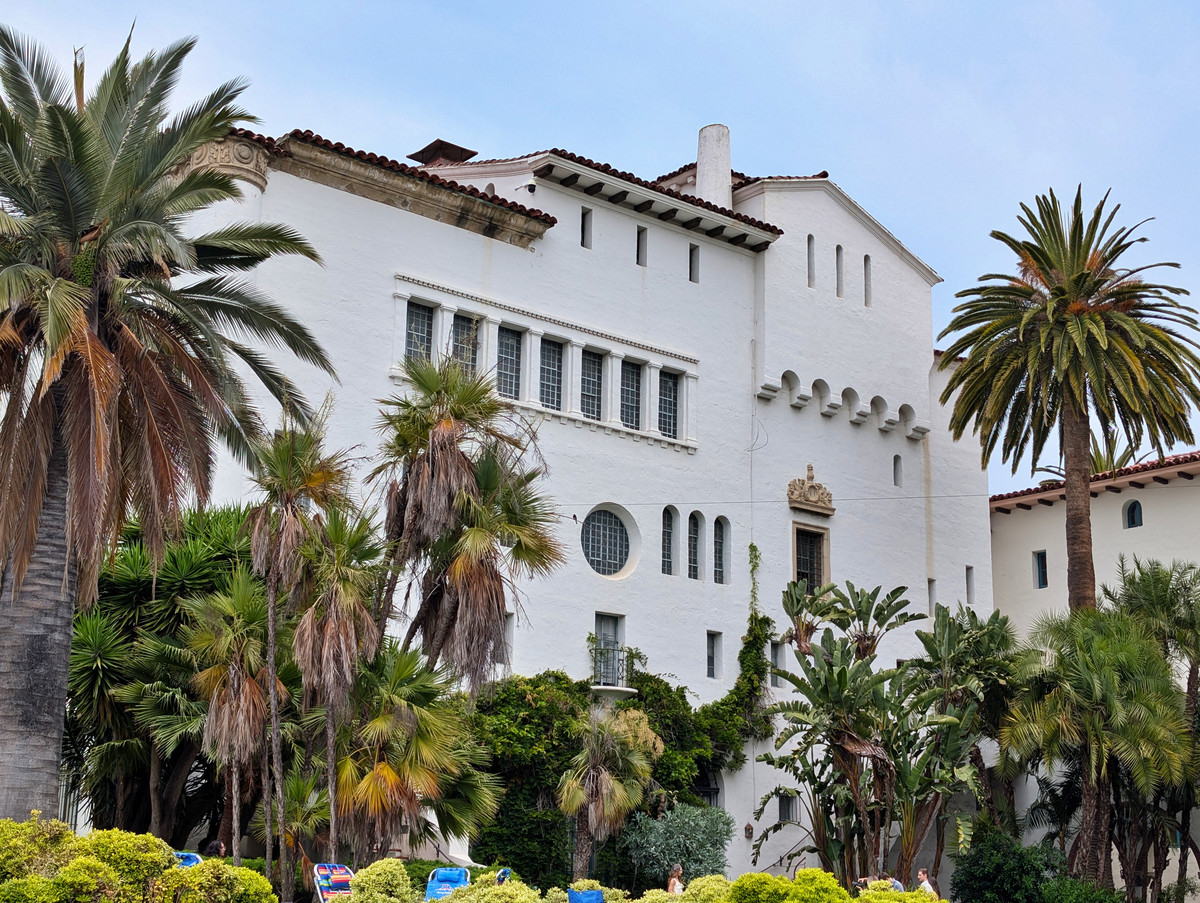 Von dort aus starteten wir unseren Rundgang entlang der historischen Gebäude, darunter auch das imposante Gerichtsgebäude, bevor wir durch die Fußgängerzone mit zahlreichen Geschäften schlenderten, bis wir die Casa de la Guerra erreichten. Dort befinden sich einige schöne Häuser im spanischen Adobe Stil.
