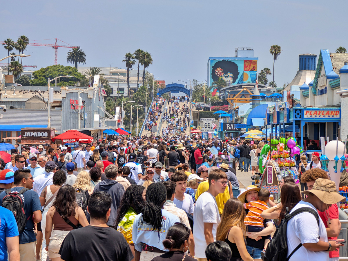 Auf dem Weg vom Ende des Piers zurück und neben dem kleinen Freizeitpark samt Achterbahn, gönnte ich mir noch ein paar Churros…nein, Korrektur, einen einzigen Churro für sechs Dollar! Ich hatte wie bei uns auf der Düsseldorfer Kirmes mit einer ganzen Tüte für den Preis gerechnet. Aber okay, dafür waren wir auf dem Santa Monica Pier in LA! 🙂