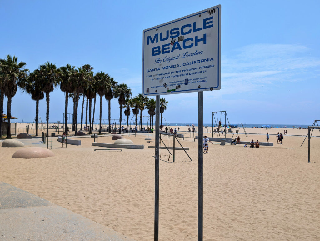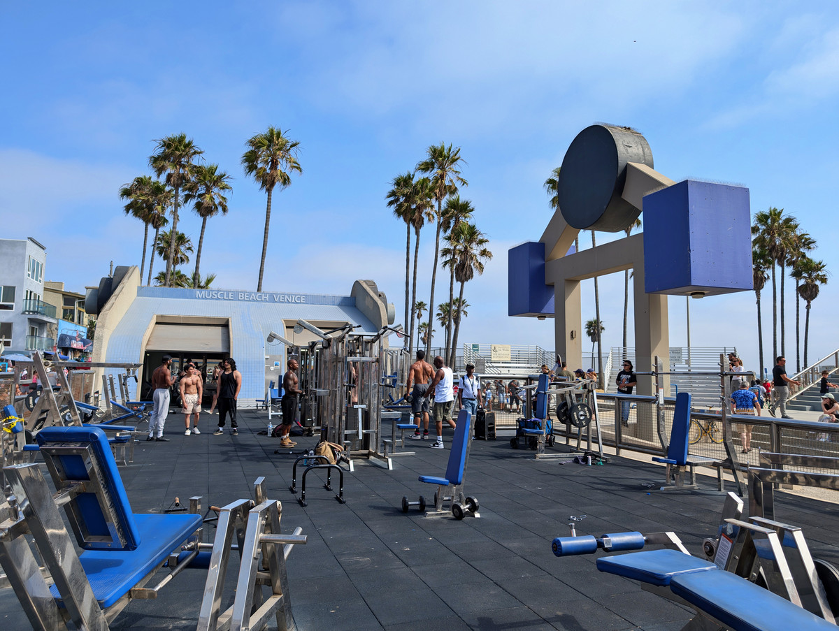 Zum Abschluss entdeckten wir dann auch noch den nahegelegene bekannten Muscle Beach und hier hatten wir auch das Glück, einige Bodybuilder beim Pumpen beobachten zu können.