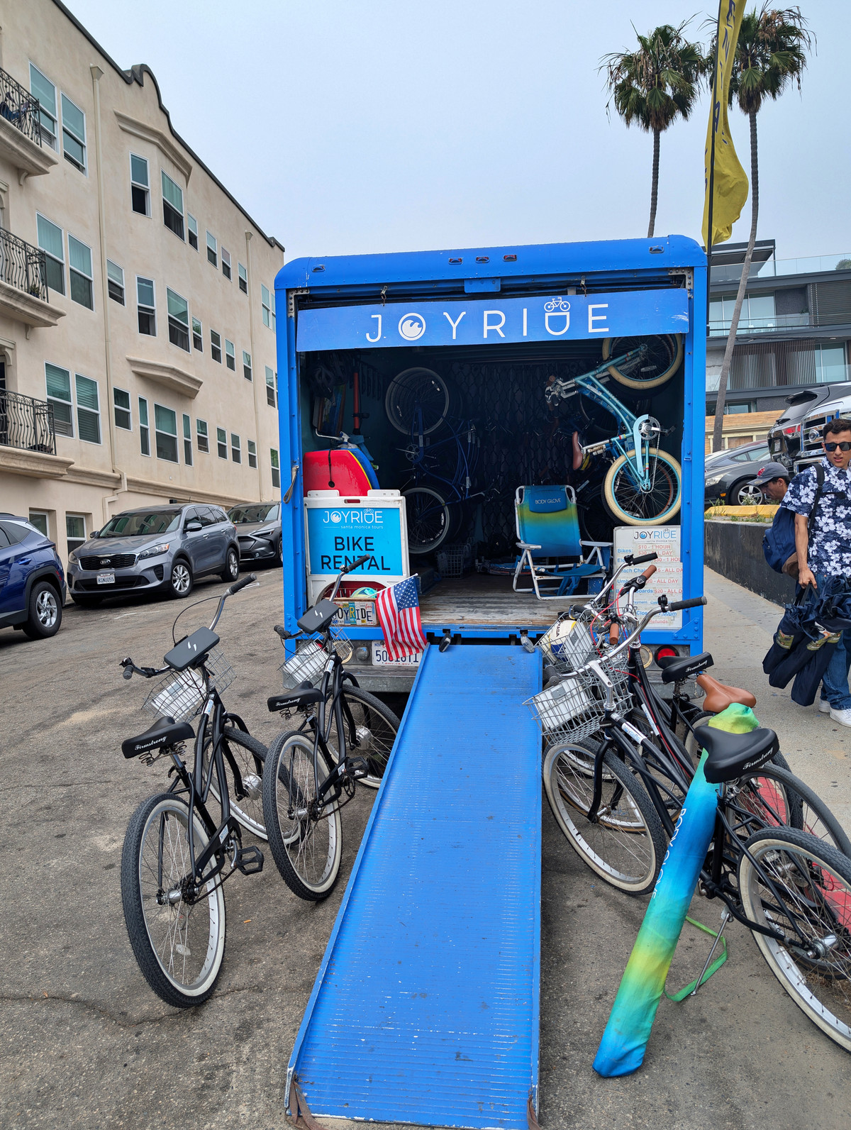 Dabei wollten wir es aber natürlich nicht belassen, wenn wir schon mal hier waren. Also mieteten wir uns ein wenig später zwei Fahrräder für je 10 Dollar pro Stunde bei Joyride – einer mobilen Verleihstation in einem blauen LKW etwas südlich vom Pier an der rückwärtigen Seite der Promenade.
