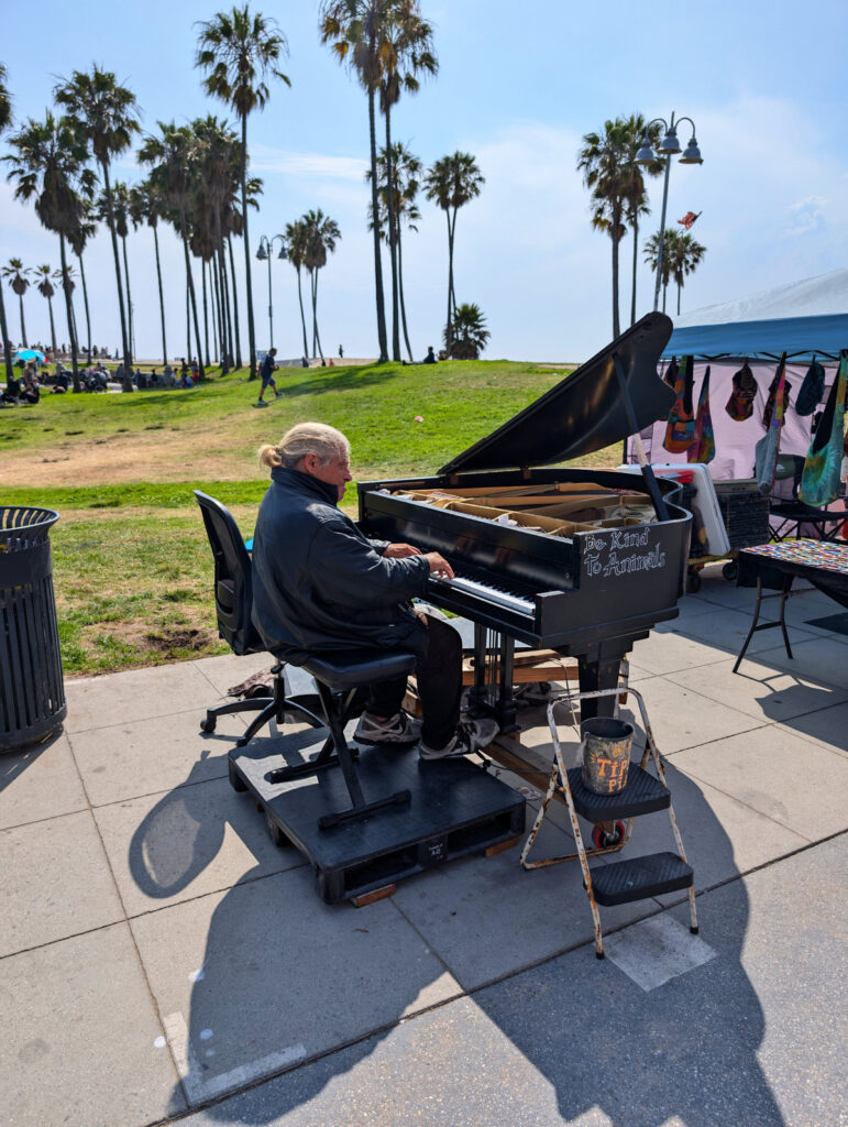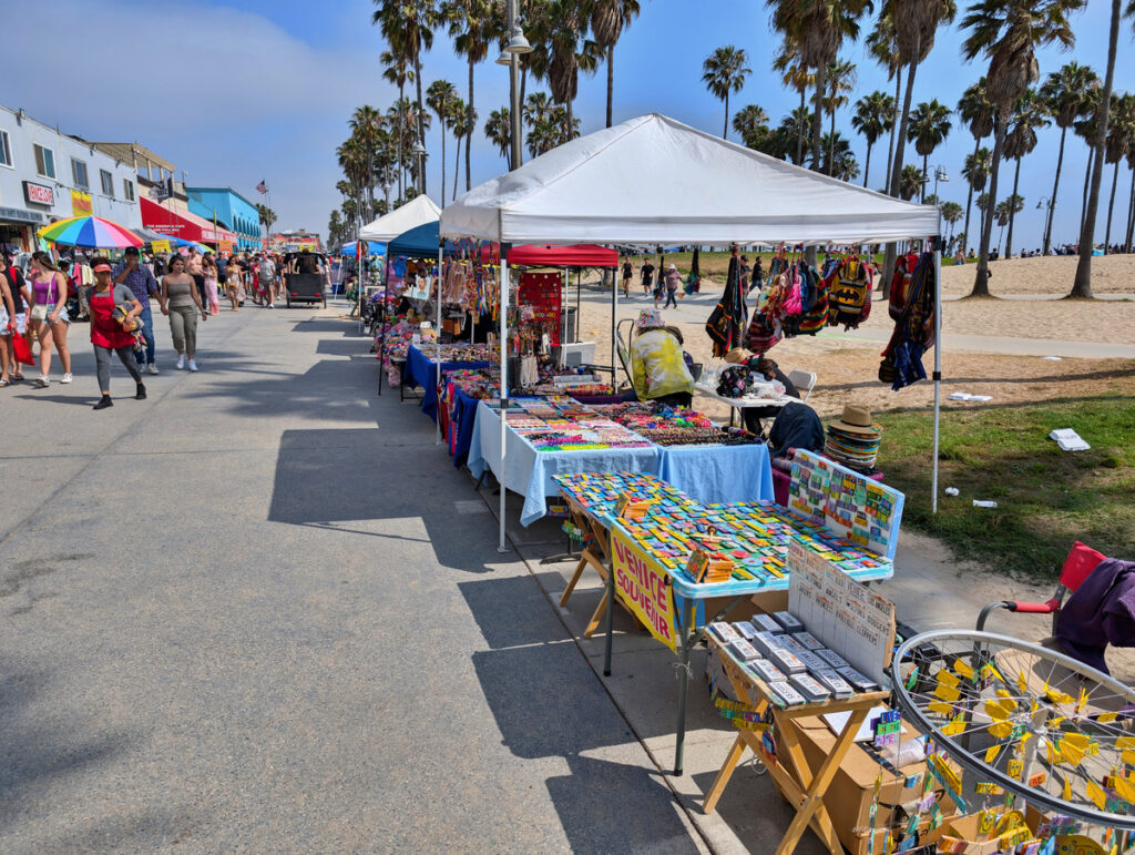 In Venice Beach schoben wir unsere Fahrräder entlang des Beach Walks und ich muss gestehen: Ich fand es dort richtig klasse! Dies lag an der im Vergleich zum St. Monica Pier deutlich entspannteren und leicht alternativen Atmosphäre, die typisch für eine Strandpromenade war. So gab es hier zahlreiche Bars und Restaurants, Souvenirläden und auch diverse Künstler, die ihr Kunsthandwerk ausstellten.