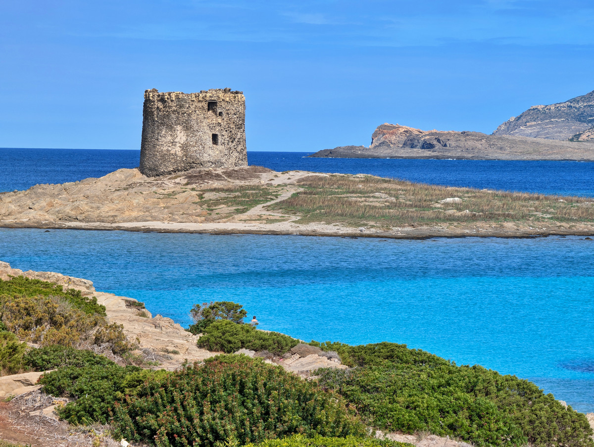 Nach einem leckeren Frühstück mit toller Aussicht brachen wir am Morgen auf, um den nur fünf Fahrminuten entfernten Strand von La Pelosa zu besuchen. Da dieser Ort ein echter Hotspot ist, wird der Zugang begrenzt. Wir hatten uns vorab ein Tagesticket für 3,50 Euro pro Person über das offizielle Portal gesichert – in der Hochsaison sollte man das übrigens mindestens 48 Stunden im Voraus tun.