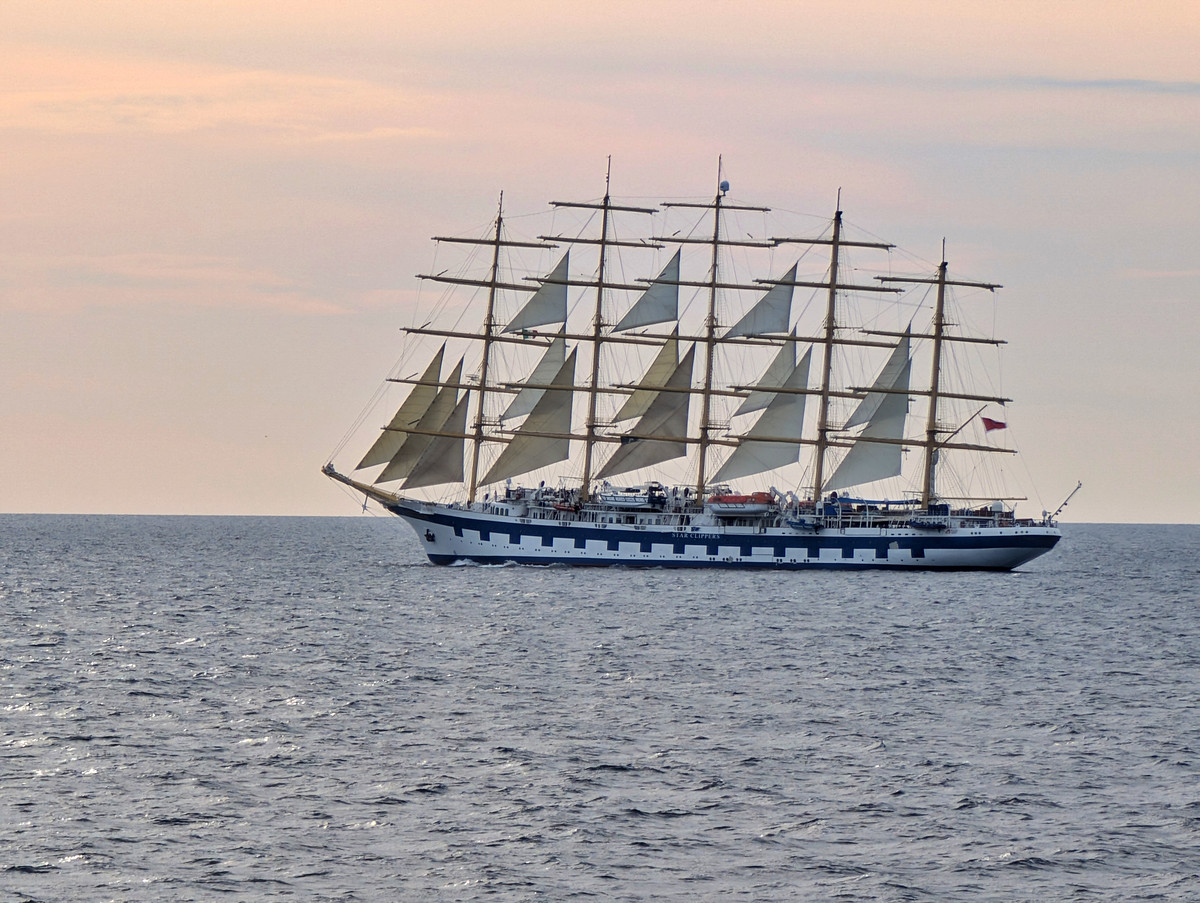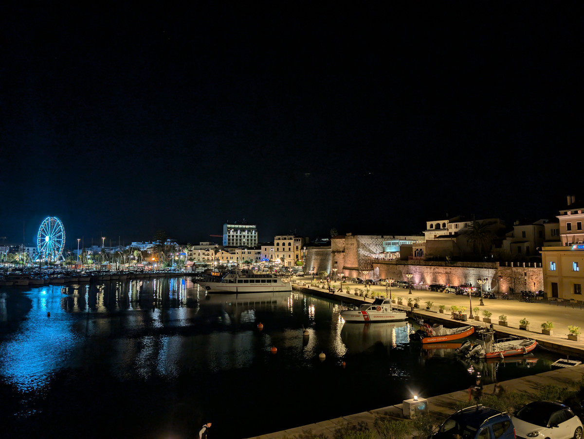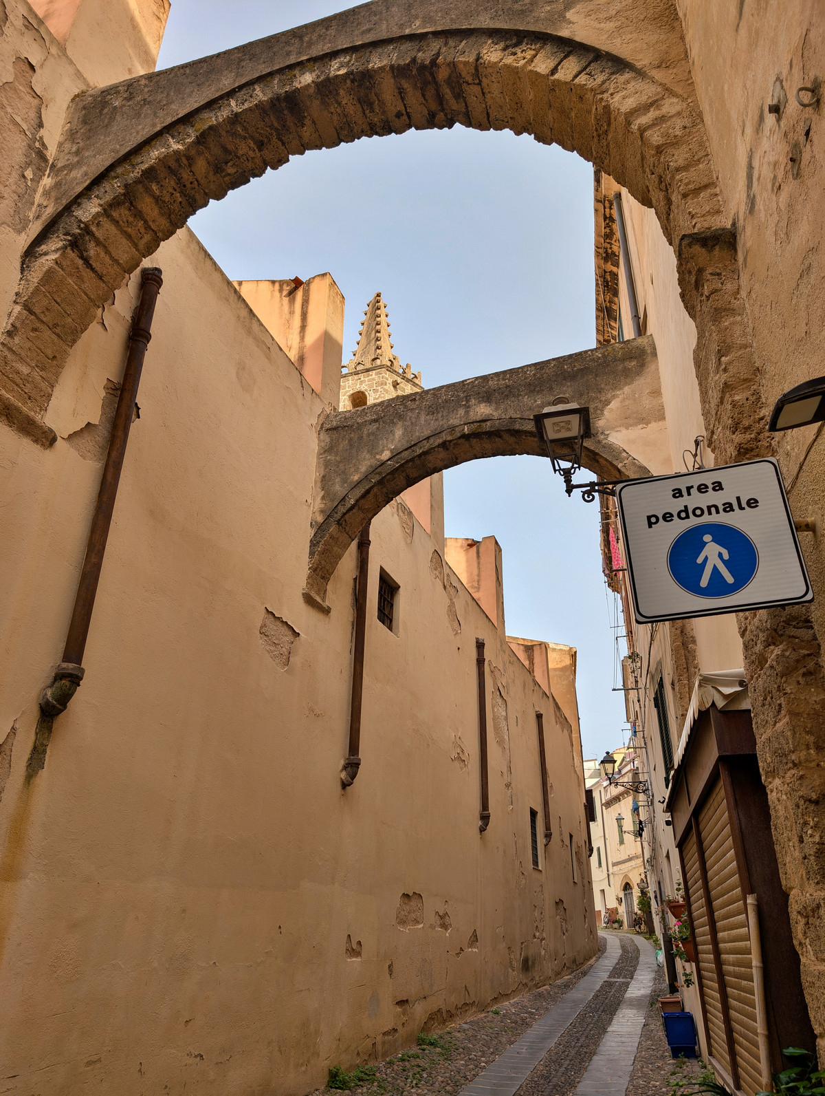 Stattdessen erkundeten wir zu Fuß die pittoreske Altstadt, die uns von Anfang an begeisterte. Wir betraten sie über die massive Stadtmauer am Torre della Polveriera. In dem Moment, als ein prächtiger Fünfmaster im Hafen ablegte, kam passenderweise die Sonne heraus und tauchte die Kanonen, Katapulte und die vielen Bars auf der Mauer in ein goldenes Licht. Diese Atmosphäre weckte in uns zudem Erinnerungen an Saint-Malo in der Bretagne.