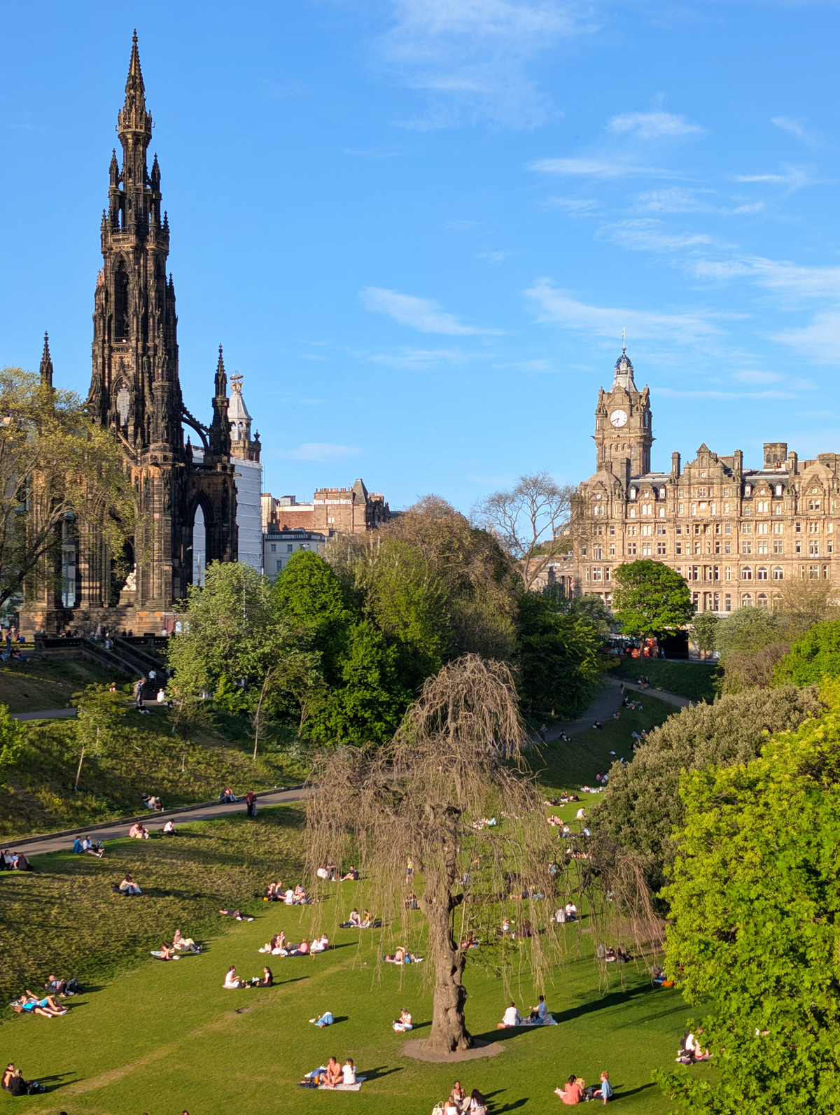 Nach der Landung wurden wir direkt überrascht: Entgegen der Vorhersage begrüßte uns Edinburgh mit angenehm warmen 22 Grad und Sonne. Mea Culpa, Edinburgh – wir hatten dich wettertechnisch wohl unterschätzt! 🙂