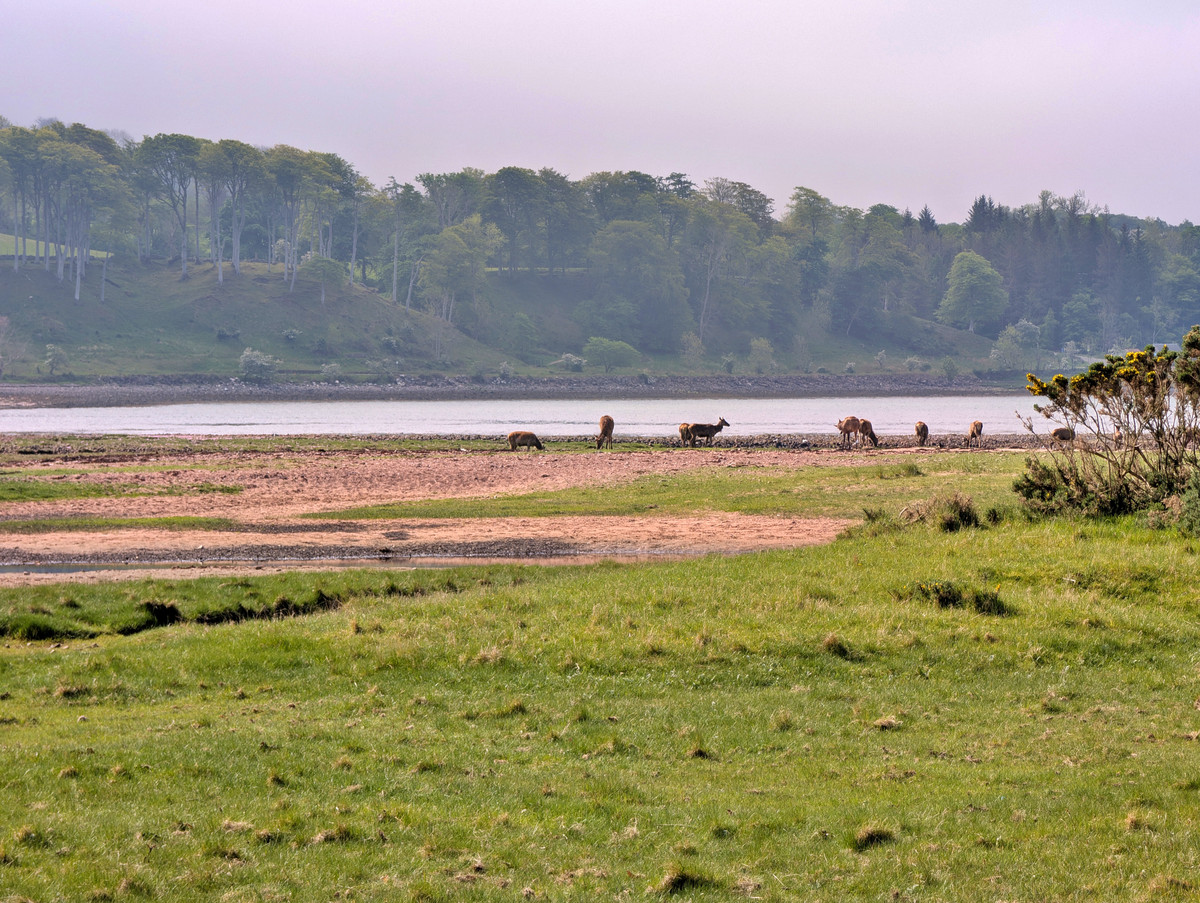 Heute Morgen empfing uns in Applecross eine ganz besondere Atmosphäre: Der Nebel hing noch tief in den Bergen fest, während sich die Sonne ganz langsam ihren Weg hindurch bahnte. Als wir zum Strand hinuntergingen, hatten wir das große Glück, ein Rudel Rehe zu entdecken, das dort in aller Seelenruhe graste – ein herrlicher, friedvoller Moment.