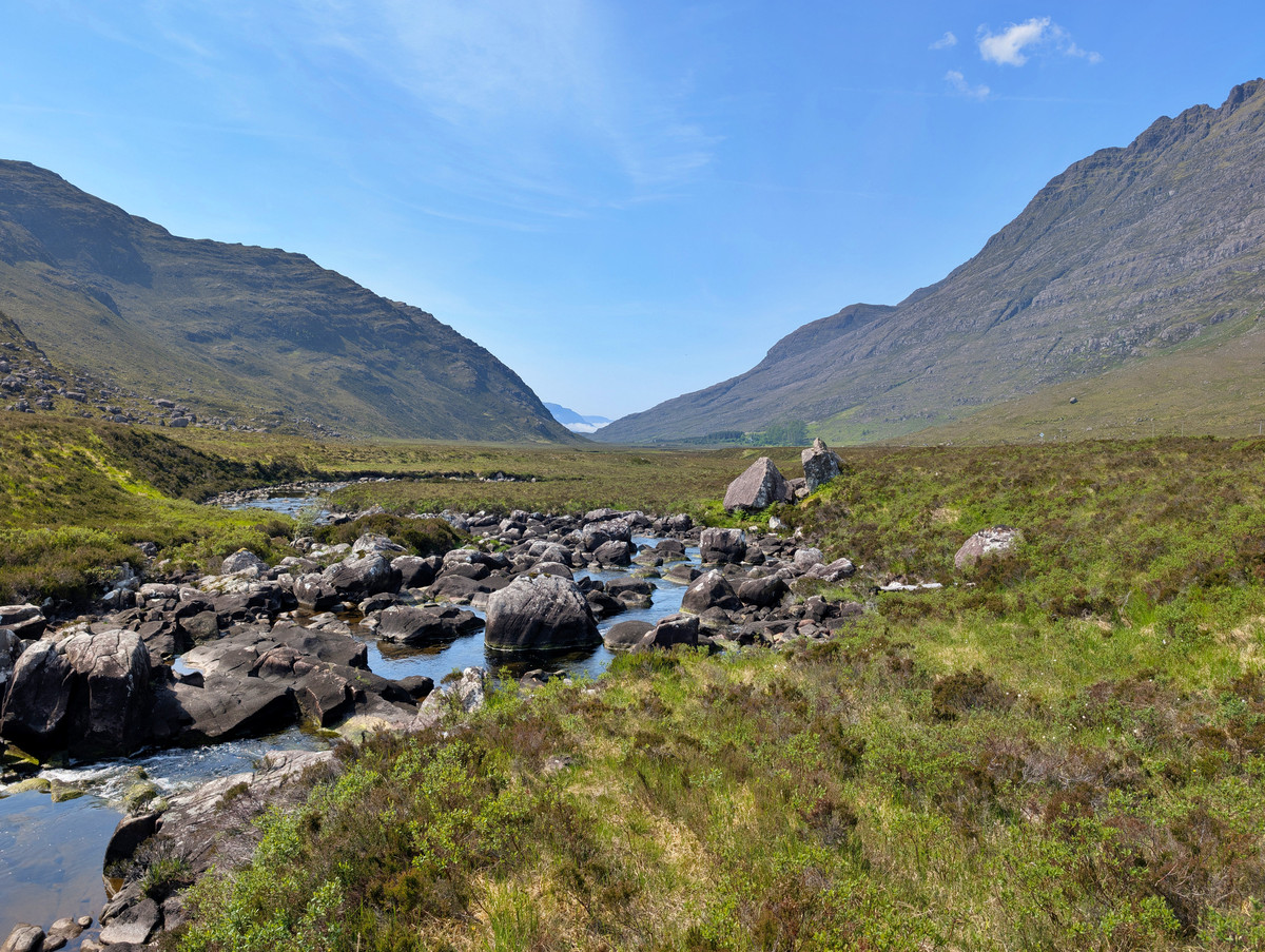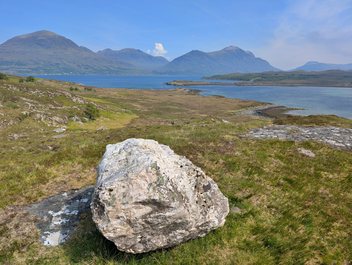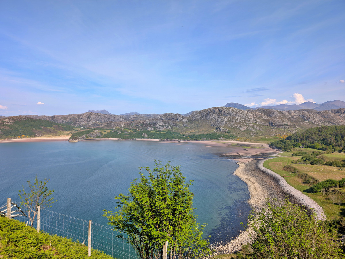Aber das war völlig in Ordnung, denn so konnten wir die ständig wechselnde Szenerie aus rauer Küste, saftig grünen Wiesen und imposanten Bergen viel besser aufsaugen. Ein besonders schönes Panorama genossen wir an einer Stelle kurz vor sowie am Loch Torridon Viewpoint.
