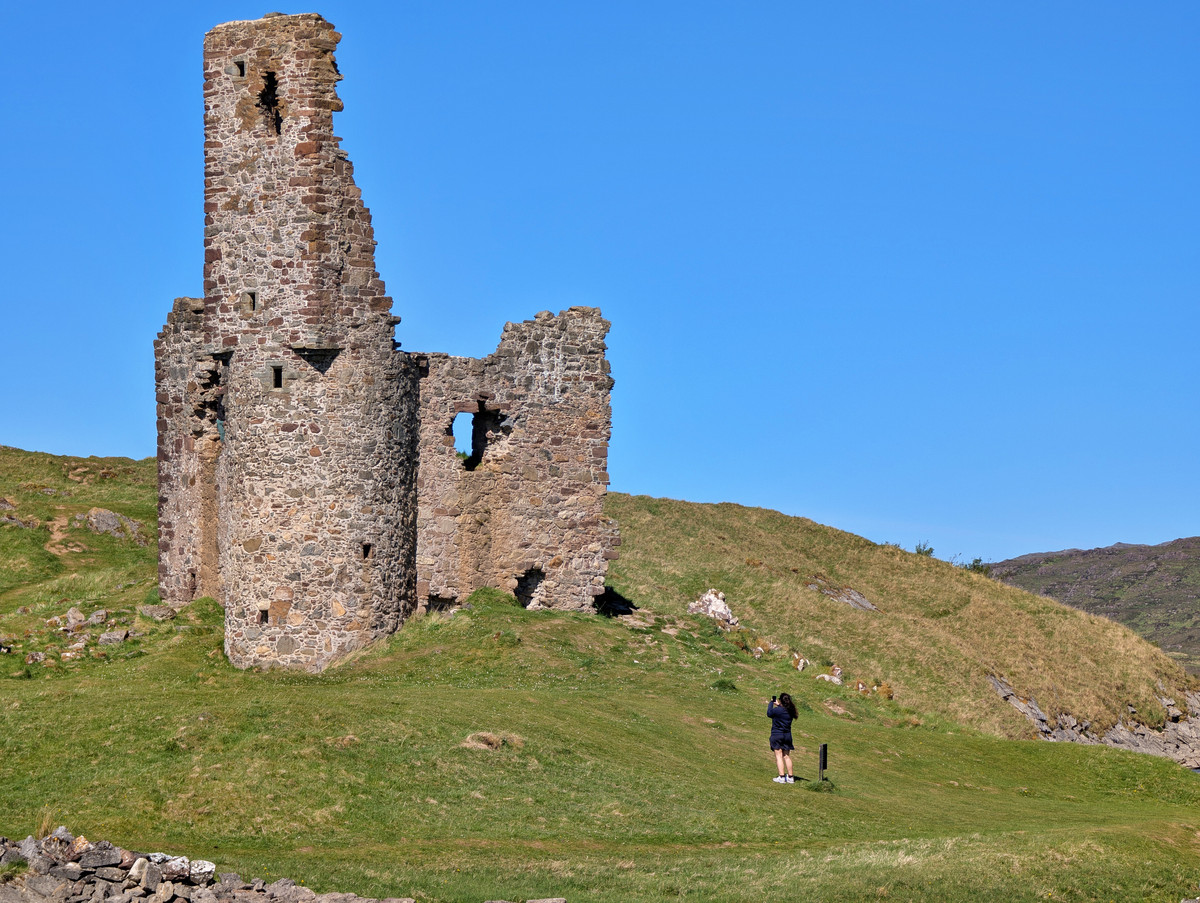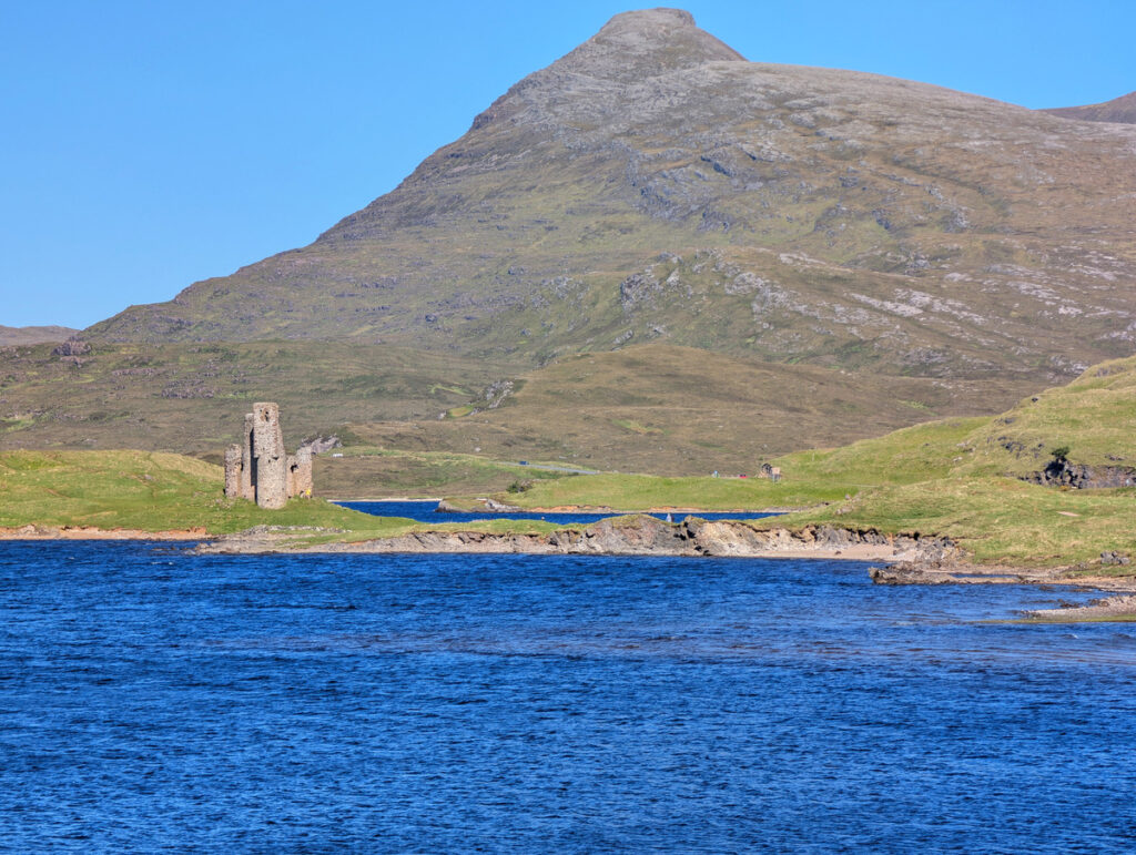 Von dort aus konnten wir bereits das Ardvreck Castle sehen. Nach einem kurzen Fußweg vom Parkplatz standen wir direkt vor der beeindruckenden Burgruine. Nur einhundert Meter weiter entdeckten wir den Ardvreck Wasserfall. Wir fanden es besonders lohnenswert, dem Bachlauf hinter dem ersten Fall ein Stück zu folgen, da sich dort noch weitere hübsche kleine Kaskaden versteckten.