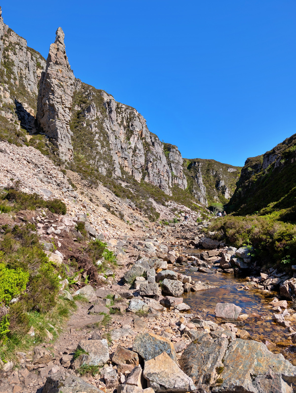Nach einem kurzen Stopp am Drumbeg Viewpoint machten wir etwa eine Meile nach dem Anschluss auf die zweispurige A894 einen kleinen Umweg zurück Richtung Ullapool, um den etwas versteckten Allt Chrainaidh Wasserfall zu besuchen. Der Weg war steinig und unbefestigt, aber recht kurzweilig und der Anblick war jede Anstrengung wert.