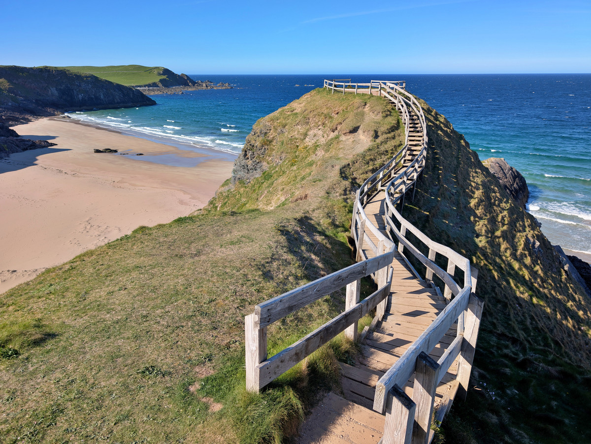 In Durness angekommen, faszinierten uns die steilen Klippen und der weite Strand. Wir parkten beim Restaurant und spazierten um den Campingplatz herum bis zum offiziellen Aussichtspunkt, um das beste Panorama zu genießen.