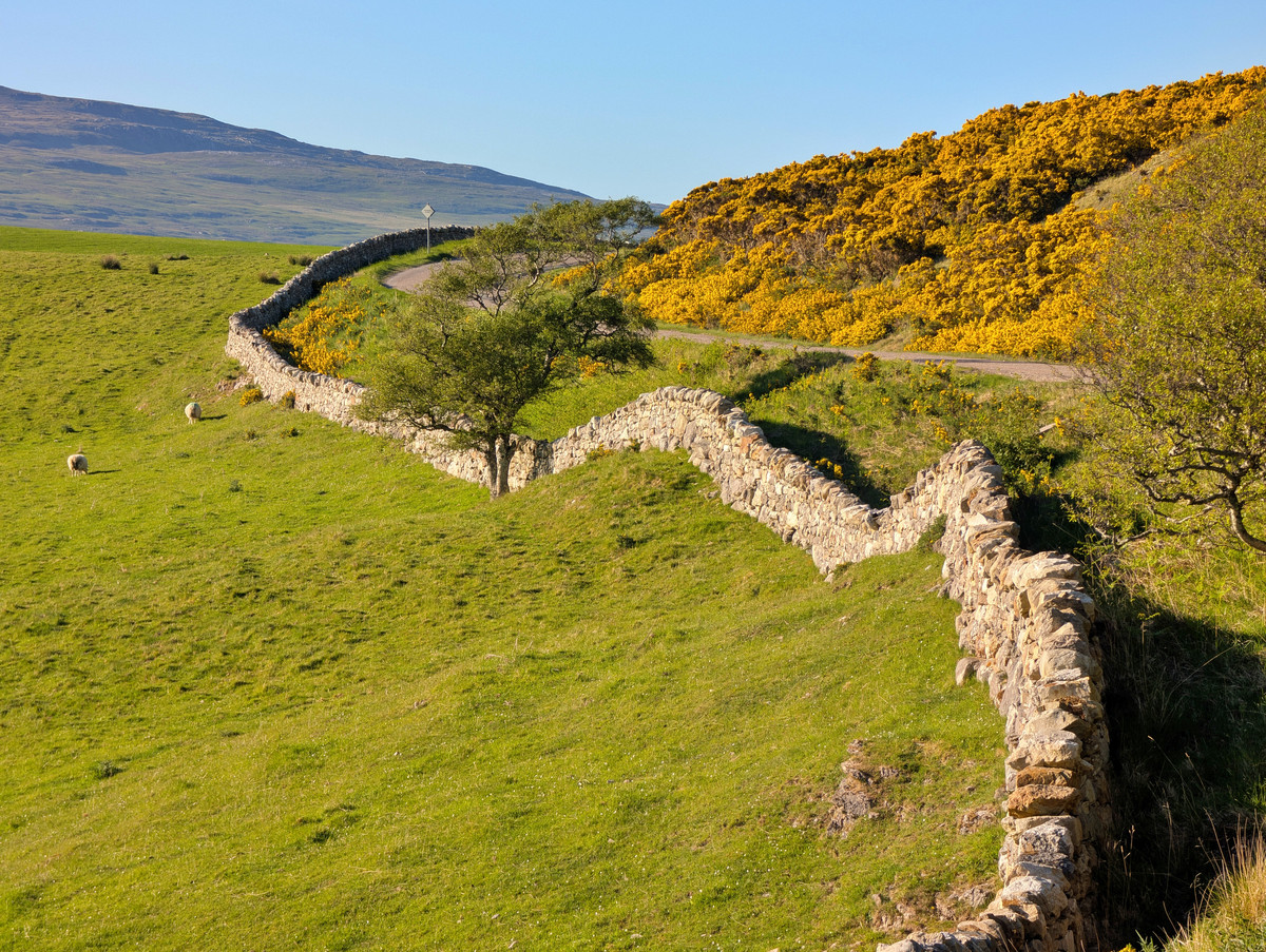 Ein weiteres Highlight war der Assynt Viewpoint, wo die Straße malerisch von blühendem Ginster eingerahmt wurde.