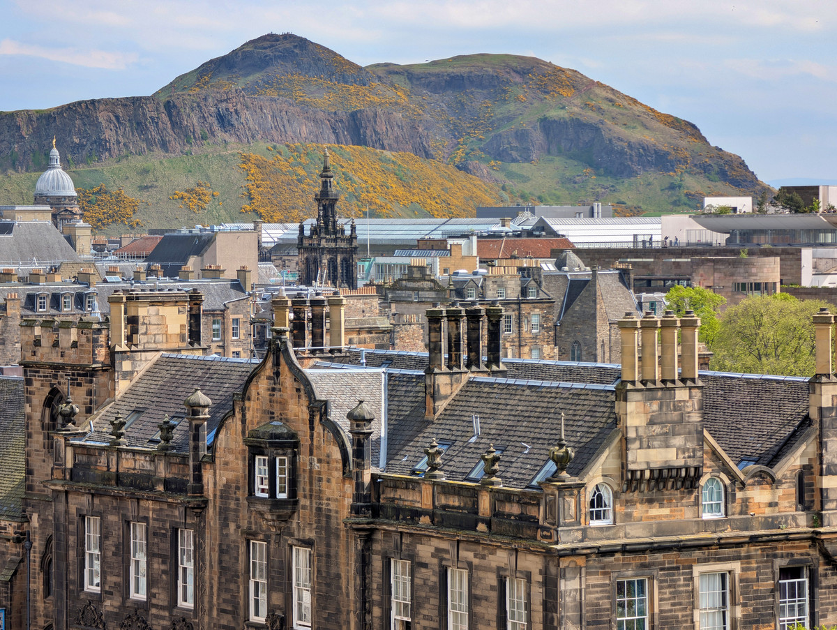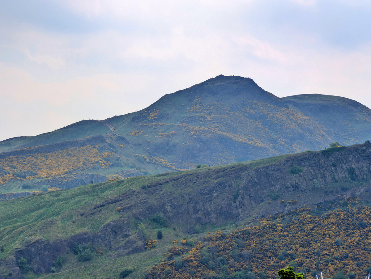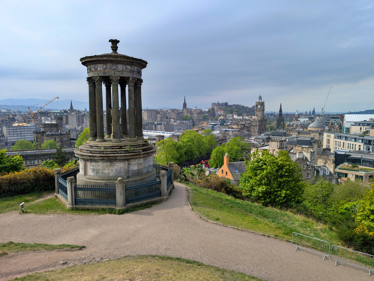 Danach spazierten wir zu Fuß hinauf auf den nahegelegenen Calton Hill. Von dort oben genossen wir eine fantastische Aussicht auf ganz Edinburgh und bis hin zum Hausberg Arthurs Seat, auch wenn sich die Sonne heute nur selten zwischen den Wolken blicken ließ. Wegen der ordentlichen Böen auf dem Hügel fühlte es sich zudem deutlich kühler an als am Vortag.
