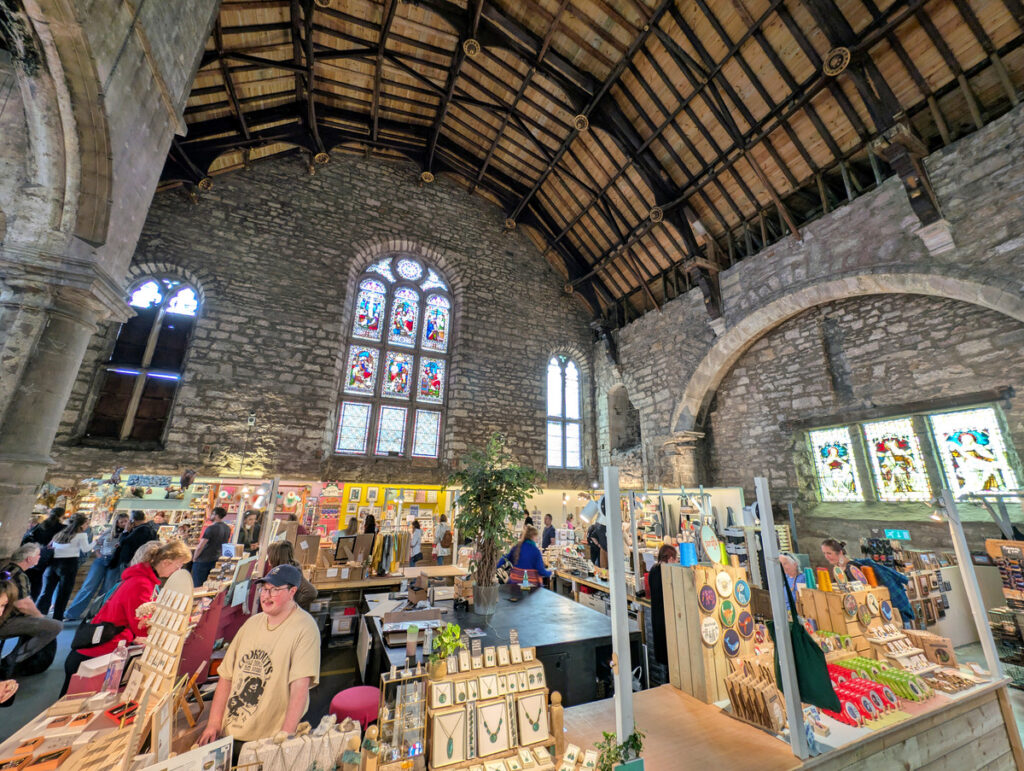 Im Tron Kirk Market, der durch seine wunderschönen alten Buntglasfenster besticht, stöberten wir durch lokales Kunsthandwerk. Wir konnten nicht widerstehen und erstanden für vier Pfund einen handbemalten Magneten mit dem Motiv der Burg sowie einige dekorative Untersetzer.