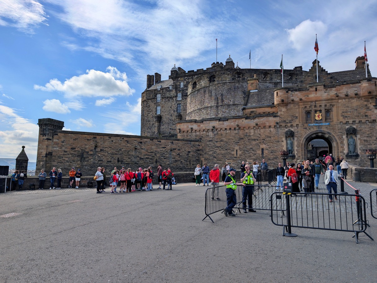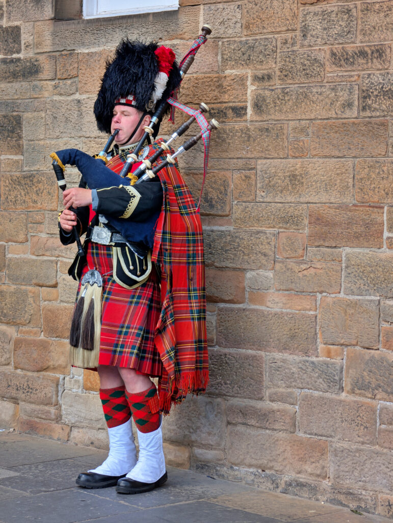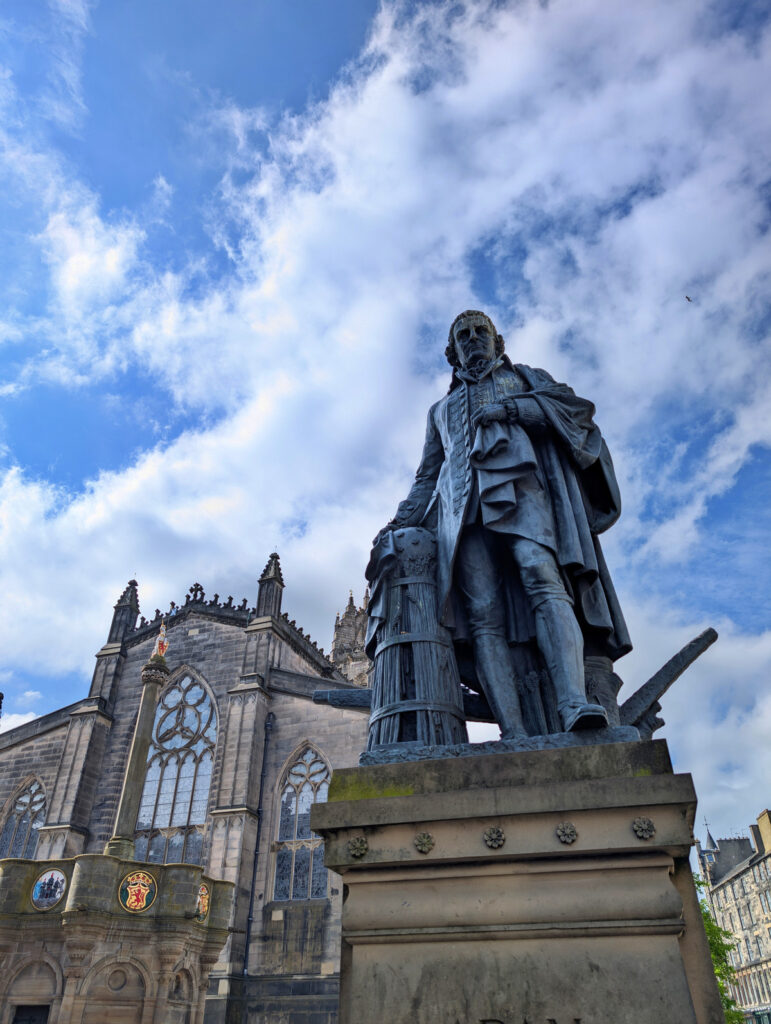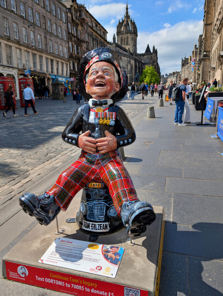 Danach schlenderten wir die Royal Mile in Richtung Burg entlang, nicht ohne dabei ein Foto der witzigen Figur zu Ehren des Edinburgher Urgesteins Tom Gilzean zu machen. Am Burgvorplatz angekommen entschieden wir uns gegen eine Besichtigung der Burg, da wir lieber noch mehr von Edinburgh erkunden wollten.