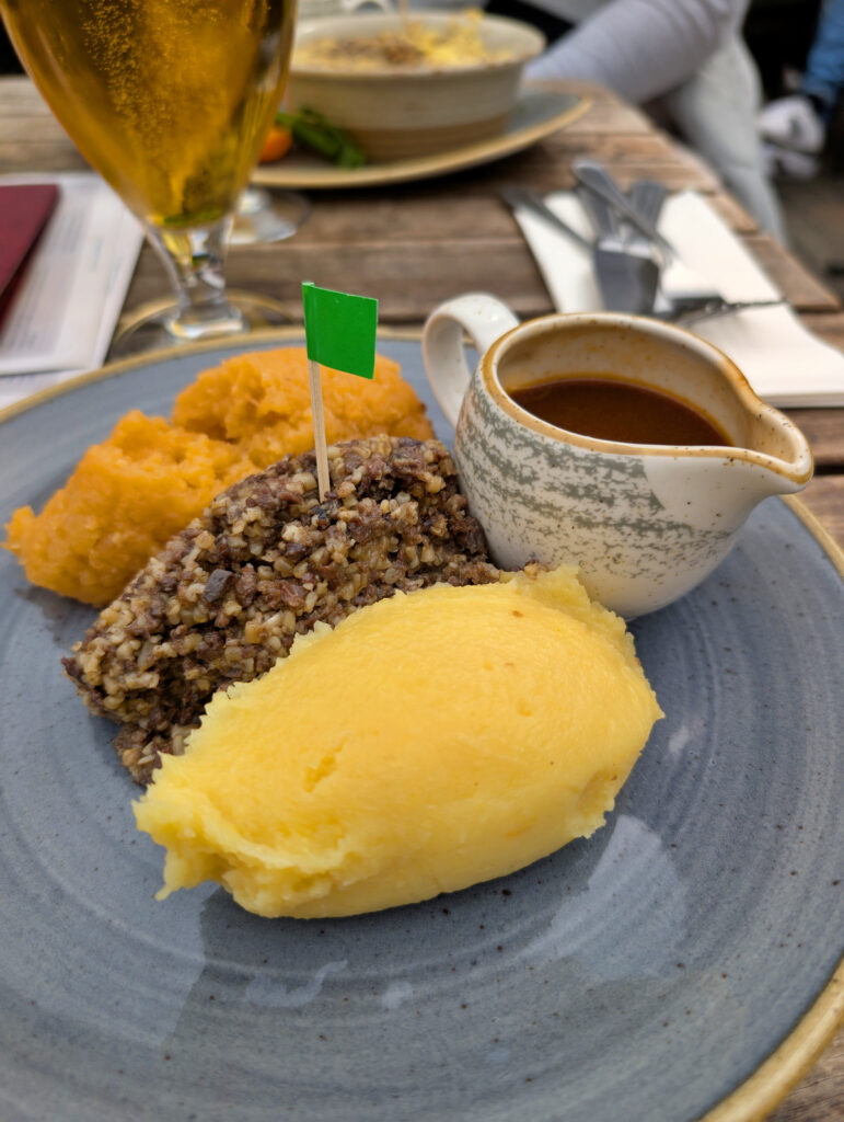 In der geschichtsträchtigen Pub-Atmosphäre des The Last Drop probierten wir zum ersten Mal traditionelles Haggis und gönnten uns dazu ein lokales Innis & Gunn Lager. Wir fanden es beide sehr schmackhaft und wären am liebsten länger sitzen geblieben, wenn wir nicht noch einiges vorgehabt hätten. Grüße gehen an dieser Stelle raus an den „Swobodoker“ ;-).
