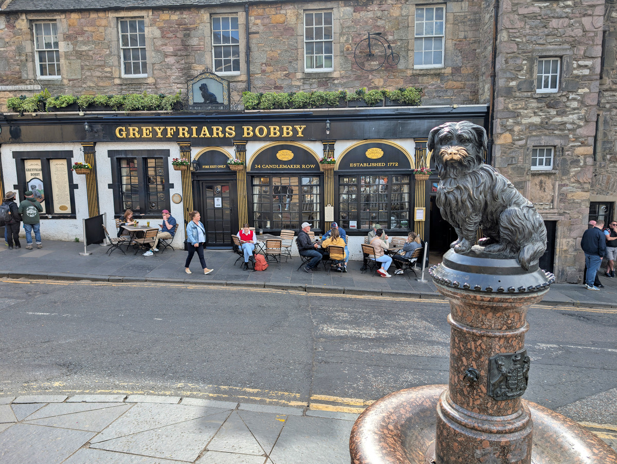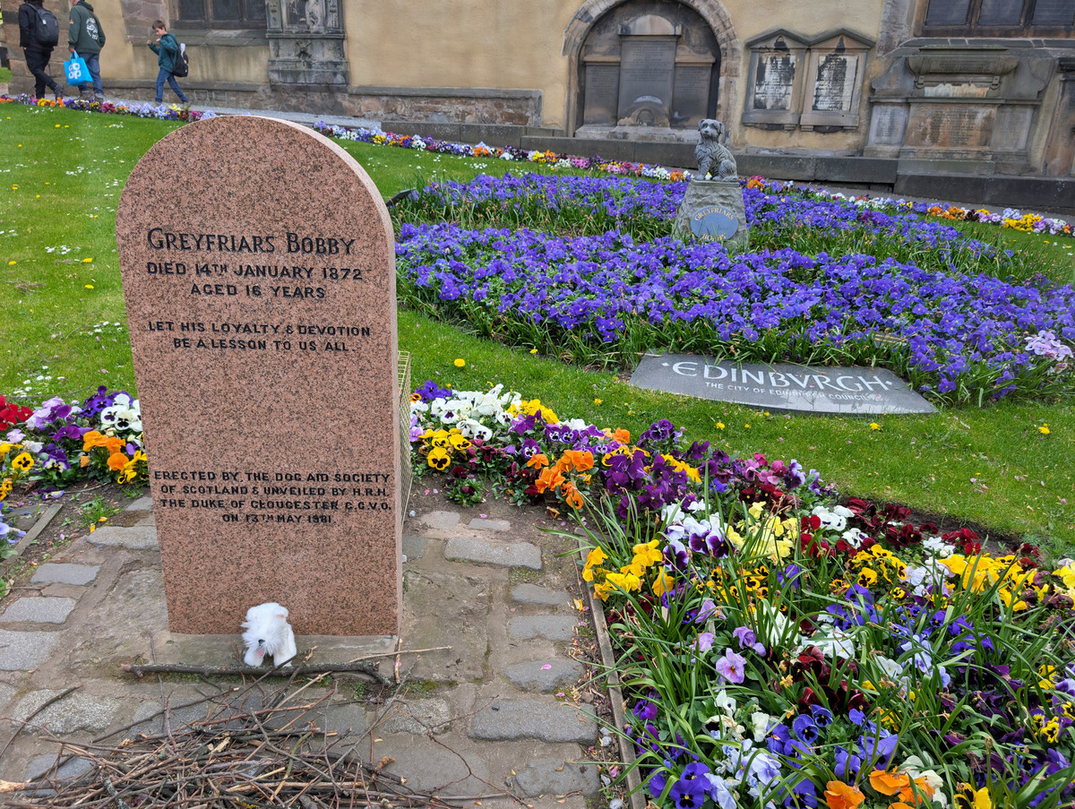 Danach besuchten wir den uralten Friedhof Greyfriars Kirkyard. Wir ließen uns von der rührenden Legende des Hundes „Greyfriars Bobby“ gefangen nehmen, der 14 Jahre lang am Grab seines Herrchens gewacht haben soll. Aber auch der Friedhof selbst mit seinen uralten Grabsteinen wirkte wie eine Oase der Ruhe inmitten der trubelingen Altstadt von Edinburgh.