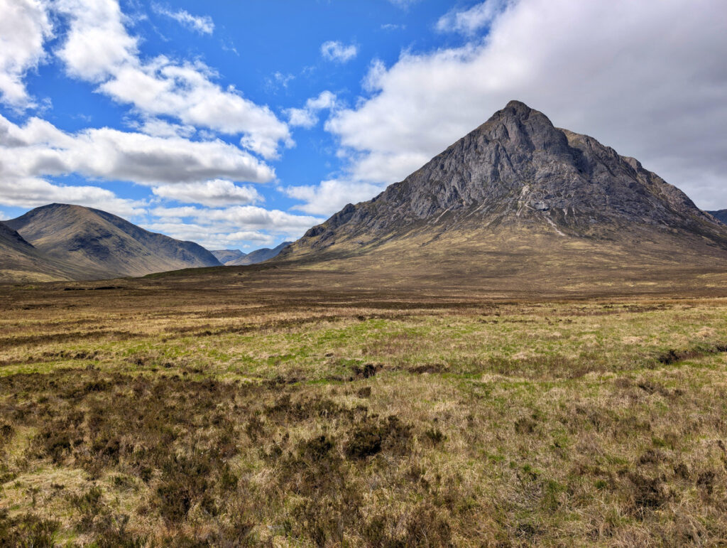 Wir fuhren zunächst etwa eine Dreiviertelstunde Richtung Tyndrum und bogen dann auf die A82 ein. Am Loch Tulla Viewpoint hielten wir für ein erstes Panoramafoto an, bevor wir in das bekannte Tal Glen Coe einfuhren. Hier mussten wir direkt wieder sobald möglich halten, um die unglaubliche Weite und Erhabenheit der Landschaft zu fotografieren.