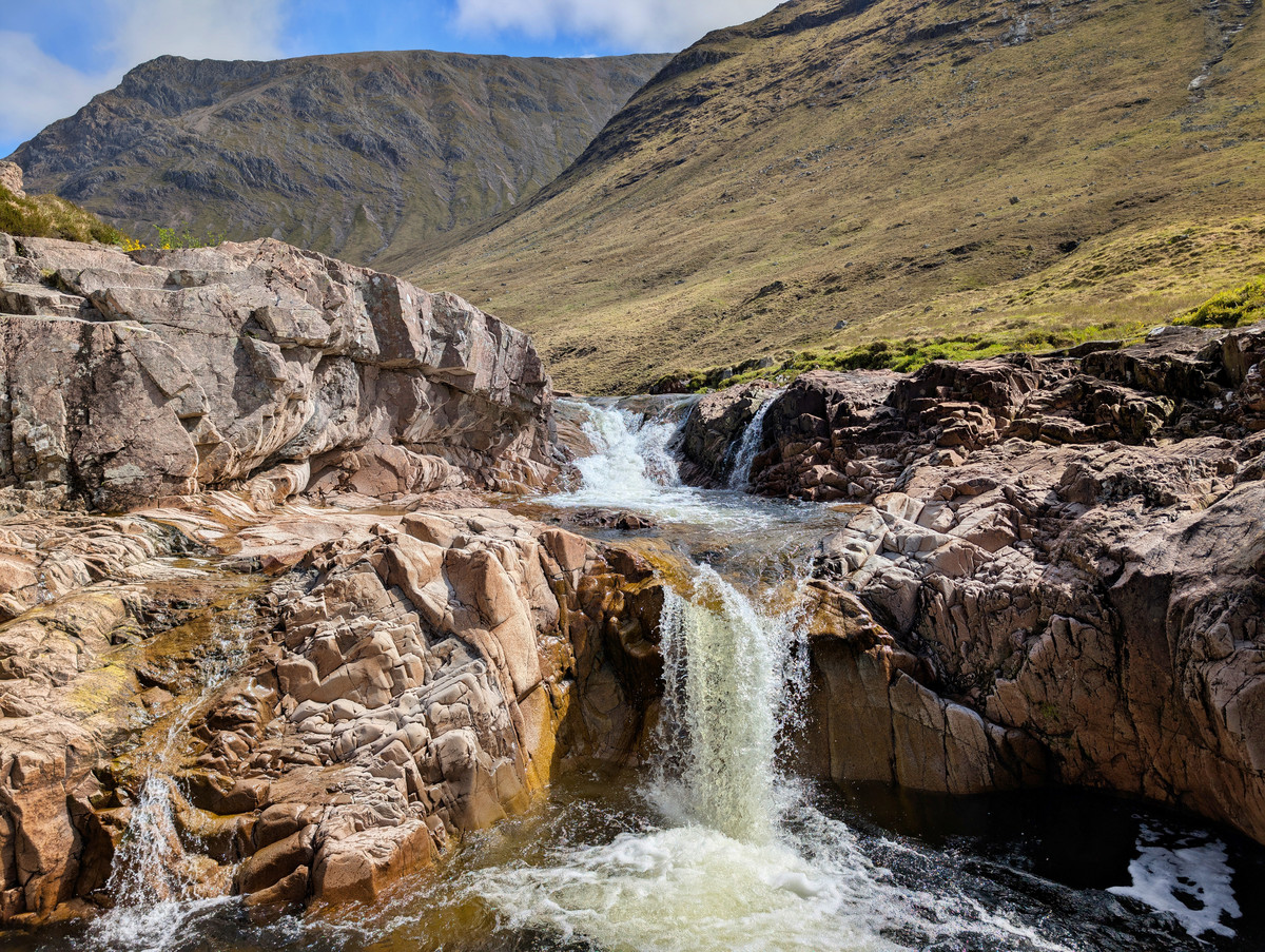 Am „Wee White House“ bei Altnafeadh und kurz darauf am Glencoe Viewpoint machten wir teils länger Halt, um die Szenerie aus verschiedenen Blickwinkeln zu fotografieren. Denn die hier erneut unglaublich weite und imposante Landschaft beeindruckte uns enorm. Auch der Glencoe-Wasserfall und die markanten Felsformationen der Three Sisters gehörten zu unseren weiteren Stopps.