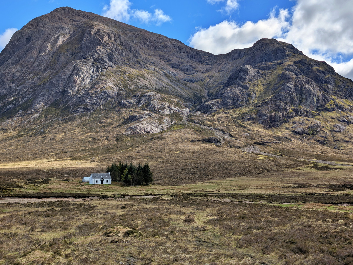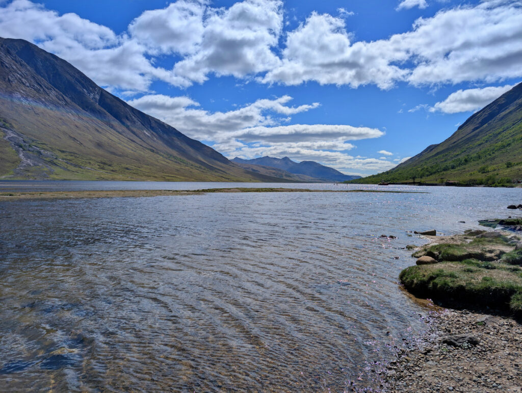 Besonders gut gefiel uns auch der Spot am Loch Achtriochtan, wo eine kleine Cottage malerisch am See liegt. Wir nutzten die kleine Ausfahrt auf der linken Seite, um unterhalb der Landstraße direkt am Wasser zu parken und die Stimmung zu genießen.