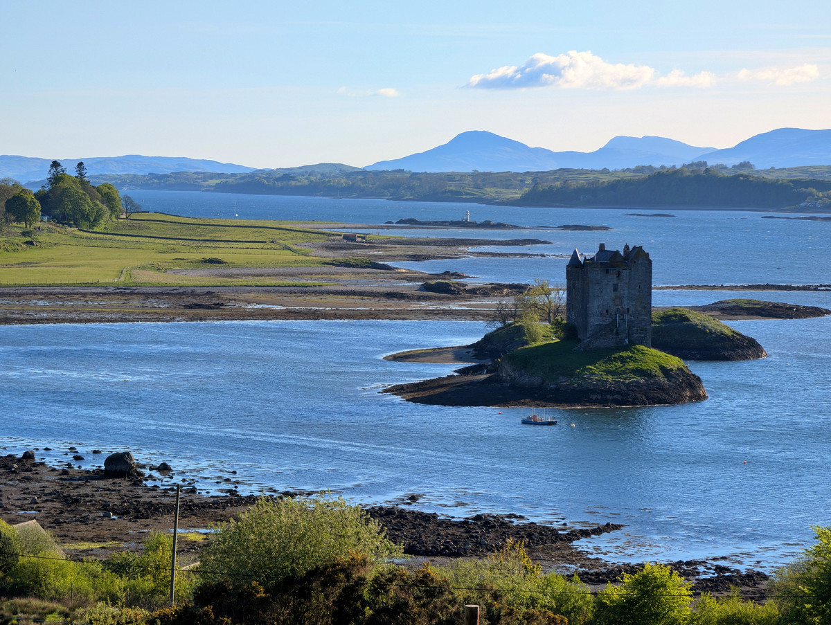 Auf dem Rückweg nach Oban bot sich uns von der Landstraße aus ein toller Blick auf Castle Stalker. Dafür hielten wir kurz am Castle Stalker View Café an, das zu dieser Zeit jedoch bereits geschlossen hatte.